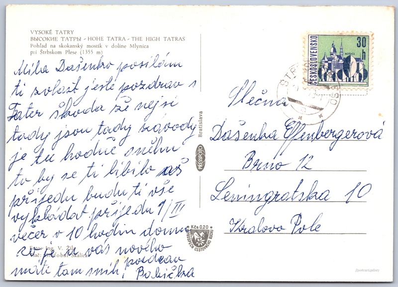 Štrbské pleso, velký skokanský můstek 2/2 Pokud chcete vidět pohlednice ve vyšším rozlišení nebo zobrazovat jejich zadní stranu, tak se prosím nejdříve přihlašte Přihlásit Zaregistrovat VYSOKÉ TATRYВЫСОКИЕ ТАТРЫ - HOHE TATRA - THE HIGH TATRASPohľad na skokanský mostík v doline Mlynica pri Štrbskom Plese (1355 m) Jazyk tištěného textu na pohlednici: slovenština K vodopádom 4141/60 ukázat na mapě V blízkém okolí místa zobrazeného na pohlednici lze najít 82 jiných pohlednic. Zobrazit blízké pohlednice Vydavatel: PressFoto Bratislava (Československo) Datum vydání není známo Pomozte nám odhadnout datum vzniku pohlednice Velikost (š x v) a tvar pohlednice: 147 x 105 mm (5.79" x 4.13"), obdélník Osoby spjaté s touto pohlednicí: Ing. V. Žila(Autor fotografie) Prošlá poštou Ceny: Příplatek na tur. ruch: 0,20 Kčs (CSK))Vyplacené známky: 0,30 Kčs (CSK) DiskuseVložit příspěvek Přidat novou složku ... Spravovat složky ...