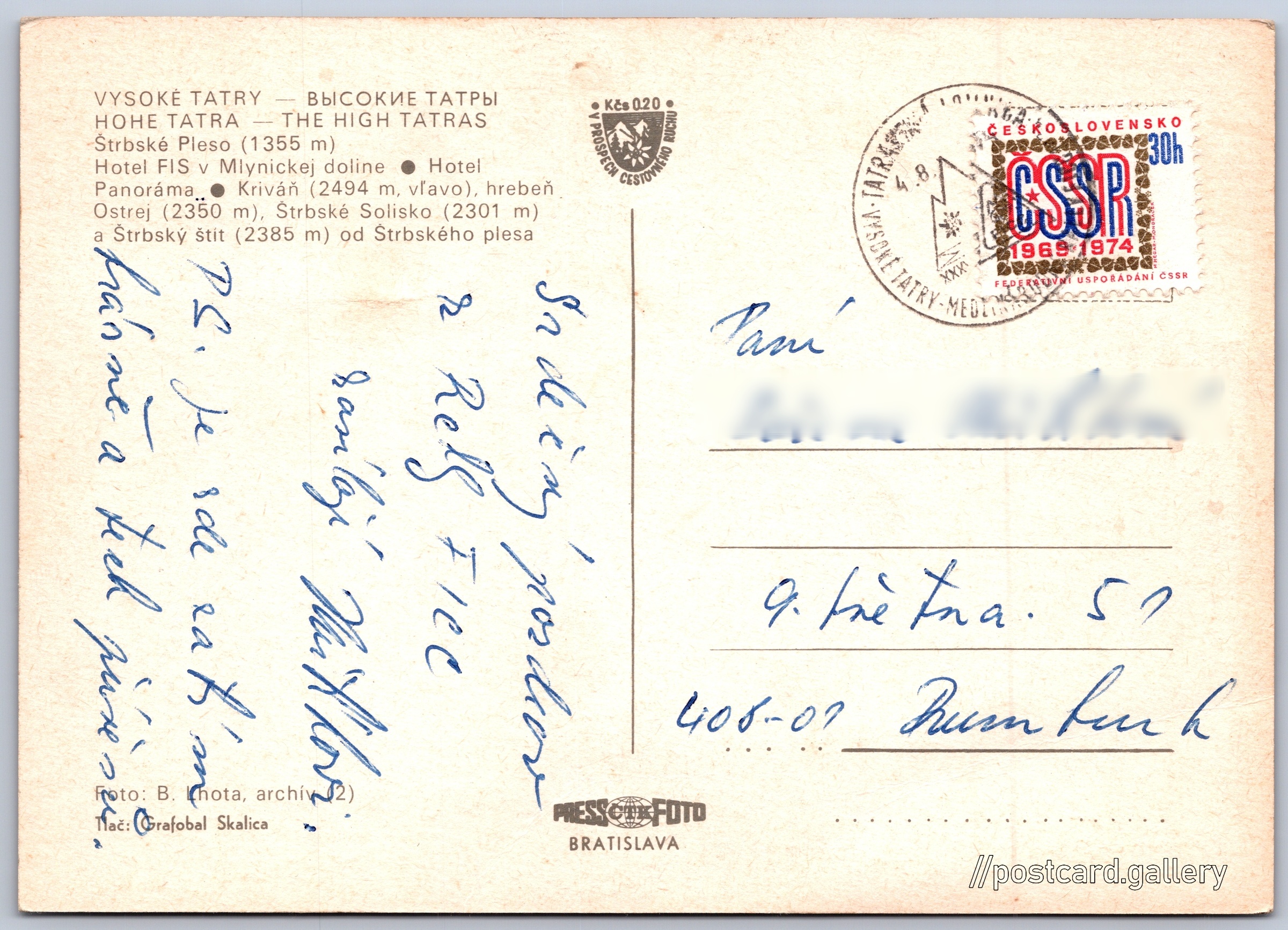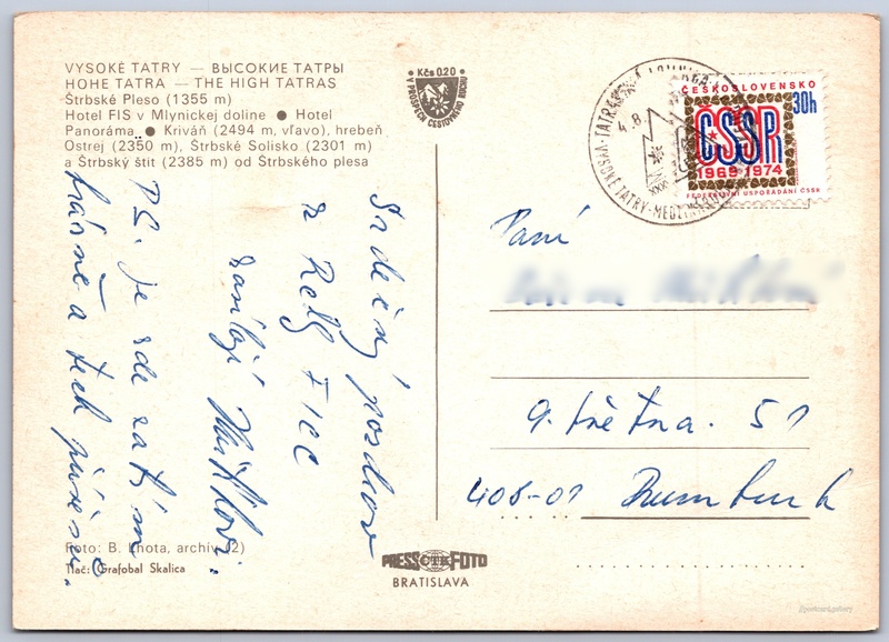 Jazyky tištěného textu na pohlednici: