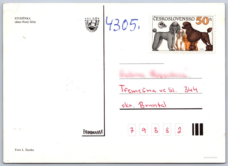 Studénka Pokud chcete vidět pohlednice ve vyšším rozlišení nebo zobrazovat jejich zadní stranu, tak se prosím nejdříve přihlašte Přihlásit Zaregistrovat Studénka STUDÉNKAokres Nový Jičín Jazyk tištěného textu na pohlednici: čeština Panská 229, Studénka, 742 13, Nový Jičín ukázat na mapě Vydavatel: Panorama (Československo) Datum vydání není známo Pomozte nám odhadnout datum vzniku pohlednice Velikost (š x v) a tvar pohlednice: 148 x 107 mm (5.83" x 4.21"), obdélník Osoby spjaté s touto pohlednicí: L. Šmitke(Autor fotografie) Prošlá poštou Ceny: Příplatek na tur. ruch: 0,20 Kčs (CSK))Vyplacené známky: 0,50 Kčs (CSK) DiskuseVložit příspěvek Přidat novou složku ... Spravovat složky ...