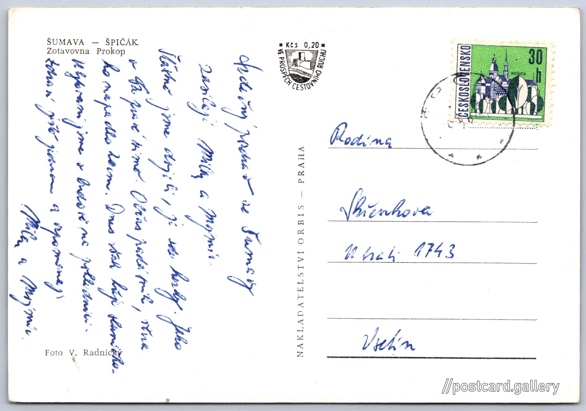 Šumava, zotavovna Prokop Pokud chcete vidět pohlednice ve vyšším rozlišení nebo zobrazovat jejich zadní stranu, tak se prosím nejdříve přihlašte Přihlásit Zaregistrovat ŠUMAVA - ŠPIČÁKZotavovna Prokop Jazyk tištěného textu na pohlednici: slovenština Bývalý hotel Prokop, Historická budova, Železná Ruda - Špičák, Česko ukázat na mapě V blízkém okolí místa zobrazeného na pohlednici lze najít 14 jiných pohlednic. Zobrazit blízké pohlednice Vydavatel: Nakladatelství Orbis (Československo) Odhadované datum vydání pohlednice: 1960 - 1963 Pomozte nám zpřesnit rok vzniku pohlednice Velikost (š x v) a tvar pohlednice: 148 x 102 mm (5.83" x 4.02"), obdélník Osoby spjaté s touto pohlednicí: Viktor Radnický(Autor fotografie) Prošlá poštou Ceny: Příplatek na tur. ruch: 0,20 Kčs (CSK))Vyplacené známky: 0,30 Kčs (CSK) DiskuseVložit příspěvek Přidat novou složku ... Spravovat složky ...