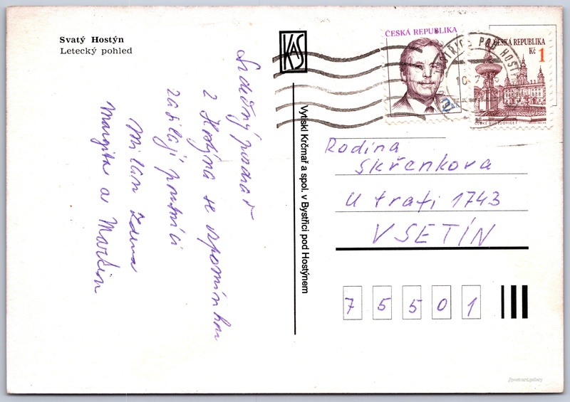 Svatý Hostýn, letecký pohled Pokud chcete vidět pohlednice ve vyšším rozlišení nebo zobrazovat jejich zadní stranu, tak se prosím nejdříve přihlašte Přihlásit Zaregistrovat Svatý HostýnLetecký pohled Jazyk tištěného textu na pohlednici: čeština Poutní areál Svatý Hostýn, Poutní místo, Svatý Hostýn, Chvalčov, Česko ukázat na mapě V blízkém okolí místa zobrazeného na pohlednici lze najít 16 jiných pohlednic. Zobrazit blízké pohlednice Vydavatel: Krčmař a spol. (Česko) Odhadované datum vydání pohlednice: 1992 - 1995 Pomozte nám zpřesnit rok vzniku pohlednice Velikost (š x v) a tvar pohlednice: 150 x 104 mm (5.91" x 4.09"), obdélník Prošlá poštou:Datum na razítku: 10.7.1995 Ceny: Vyplacené známky: 3,00 Kč (CZK) DiskuseVložit příspěvek Přidat novou složku ... Spravovat složky ...