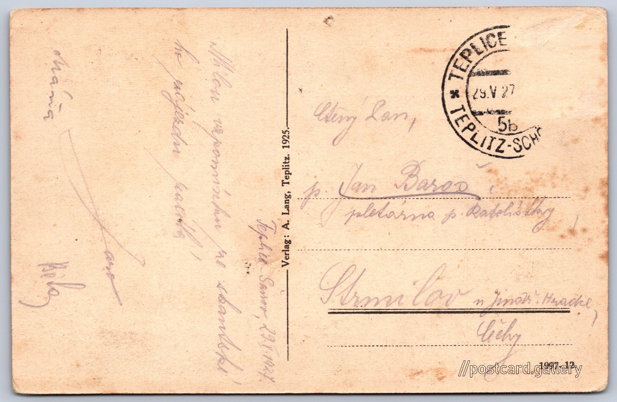 Teplice, rybník v zámecké zahradě Pokud chcete vidět pohlednice ve vyšším rozlišení nebo zobrazovat jejich zadní stranu, tak se prosím nejdříve přihlašte Přihlásit Zaregistrovat MammaFho pacijenetreMhlonpracitla.raponénken preTeplice Savor, 29.5.1924.skantske.Verlag: A. Lang, Teplitz. 1925.Chery Lan,eetingTEPLIC* 29.V.27ps. VanJan BarooI pletarna s. RatolisthargStrmilovIn Jinoer. HradhelicheJ1997-12. Jazyk tištěného textu na pohlednici: čeština Teplice, Teplice ukázat na mapě V blízkém okolí místa zobrazeného na pohlednici lze najít 8 jiných pohlednic. Zobrazit blízké pohlednice Vydavatel: A. Lang (Československo) Rok vydání pohlednice: 1925 Velikost (š x v) a tvar pohlednice: 141 x 91 mm (5.55" x 3.58"), obdélník Prošlá poštou:Datum na razítku: 29.5.1927Datum napsání pohledu: 29.5.1927 DiskuseVložit příspěvek Přidat novou složku ... Spravovat složky ...