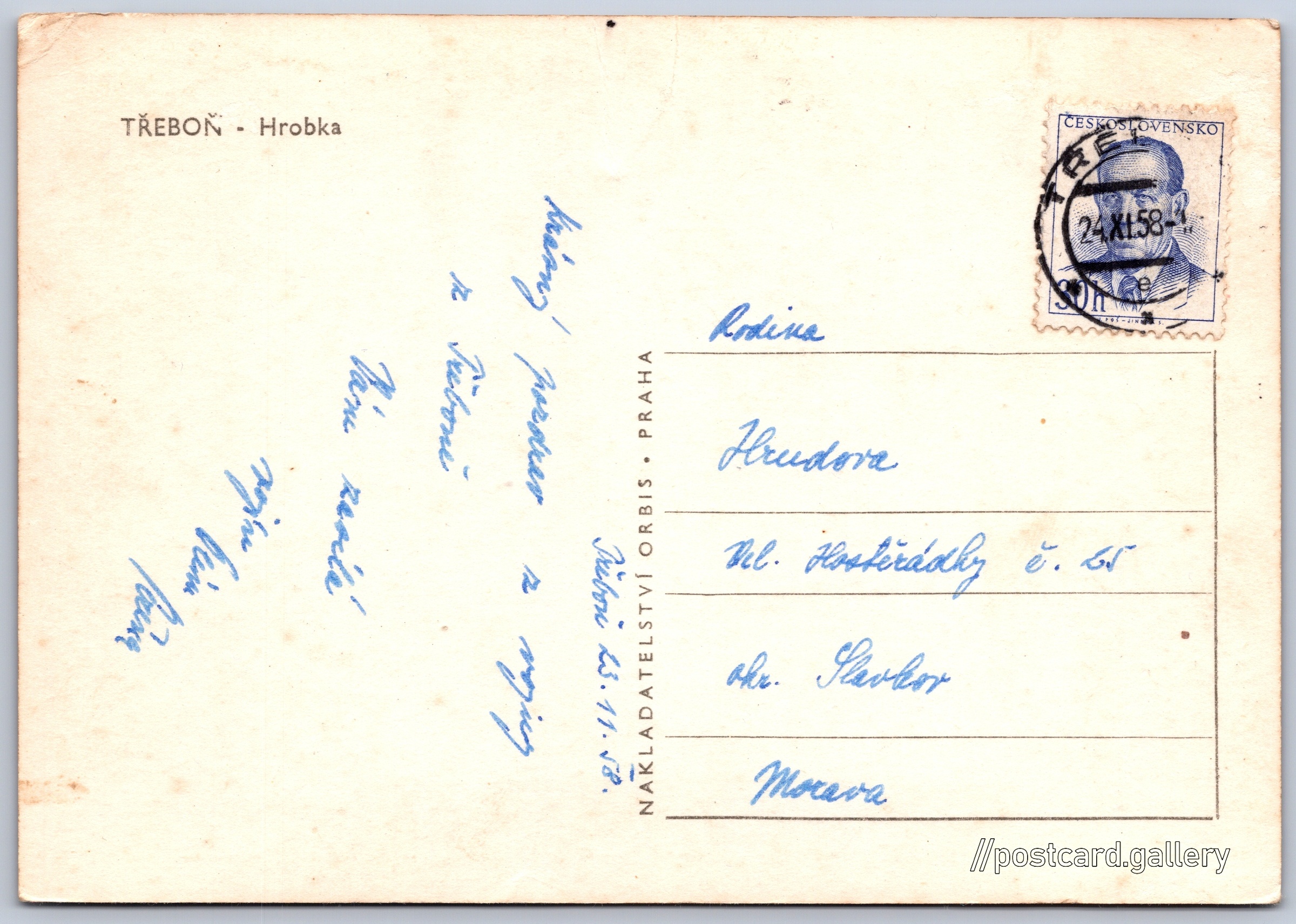 Datum napsání pohledu: 23.11.1958