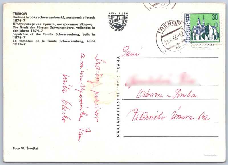 Jazyky tištěného textu na pohlednici: