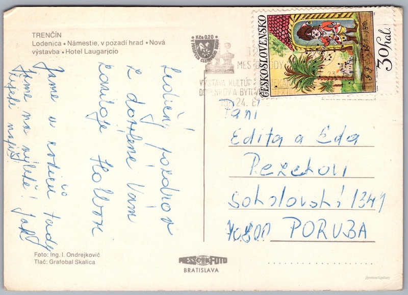 Trenčín 6/9 Pokud chcete vidět pohlednice ve vyšším rozlišení nebo zobrazovat jejich zadní stranu, tak se prosím nejdříve přihlašte Přihlásit Zaregistrovat Trenčín TRENČÍN- Lodenica- Námestie, v pozadí hrad- Nová výstavba- Hotel Laugaricio Jazyk tištěného textu na pohlednici: slovenština Trenčínský hrad, Hrad, Trenčín, Slovensko ukázat na mapě V blízkém okolí místa zobrazeného na pohlednici lze najít 9 jiných pohlednic. Zobrazit blízké pohlednice Vydavatel: PressFoto Bratislava (Československo) Datum vydání není známo Pomozte nám odhadnout datum vzniku pohlednice Velikost (š x v) a tvar pohlednice: 148 x 105 mm (5.83" x 4.13"), obdélník Osoby spjaté s touto pohlednicí: Ivan Ondrejkovič(Autor fotografie) Prošlá poštou Ceny: Vyplacené známky: 0,30 Kčs (CSK) DiskuseVložit příspěvek Přidat novou složku ... Spravovat složky ...