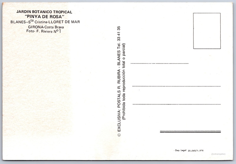 Tropická botanická zahrada Pinya de Rosa Pokud chcete vidět pohlednice ve vyšším rozlišení nebo zobrazovat jejich zadní stranu, tak se prosím nejdříve přihlašte Přihlásit Zaregistrovat JARDIN BOTANICO TROPICAL"PINYA DE ROSA"BLANES - Sta Cristina - LLORET DE MARGIRONA - Costa BravaFoto - F. Riviere N°1 Jazyk tištěného textu na pohlednici: katalánština Jardí Botànic Tropical Pinya de Rosa, Zahrada, park, Blanes, Španělsko ukázat na mapě Vydavatel: Postals R. Rrubira - Blanes (Španělsko) Datum vydání není známo Pomozte nám odhadnout datum vzniku pohlednice Velikost (š x v) a tvar pohlednice: 149 x 102 mm (5.87" x 4.02"), obdélník Osoby spjaté s touto pohlednicí: F. Riviere(Autor fotografie) Čistá pohlednice (neprošlá poštou) DiskuseVložit příspěvek Přidat novou složku ... Spravovat složky ...
