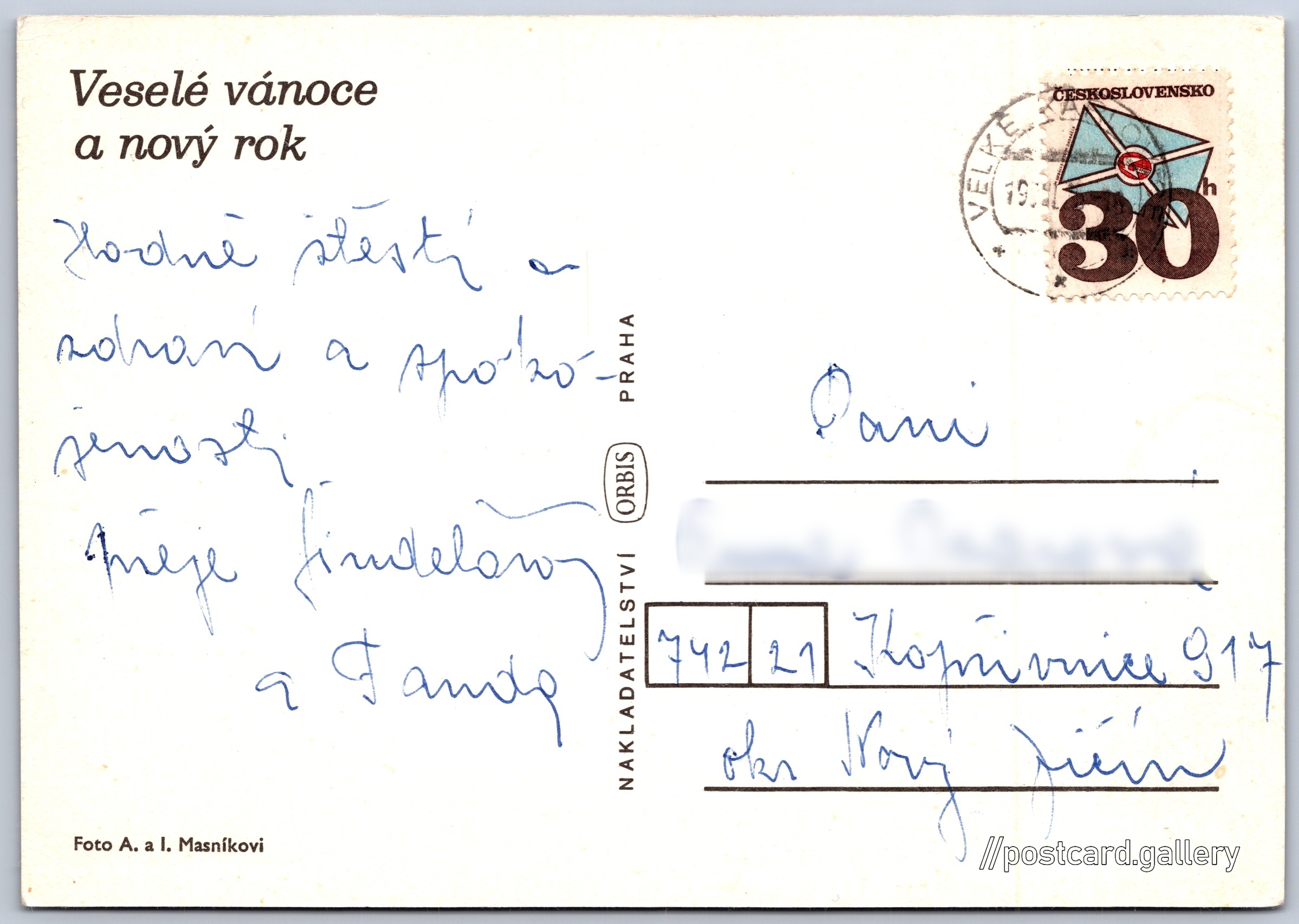 Vánoční přání, baňky Pokud chcete vidět pohlednice ve vyšším rozlišení nebo zobrazovat jejich zadní stranu, tak se prosím nejdříve přihlašte Přihlásit Zaregistrovat Veselé vánoce a nový rok Jazyk tištěného textu na pohlednici: čeština Vydavatel: Nakladatelství Orbis (Československo) Datum vydání není známo Pomozte nám odhadnout datum vzniku pohlednice Velikost (š x v) a tvar pohlednice: 148 x 103 mm (5.83" x 4.06"), obdélník Osoby spjaté s touto pohlednicí: A. Masníková(Autor fotografie) I. Masník(Autor fotografie) Prošlá poštou Ceny: Vyplacené známky: 0,30 Kčs (CSK) DiskuseVložit příspěvek Přidat novou složku ... Spravovat složky ...