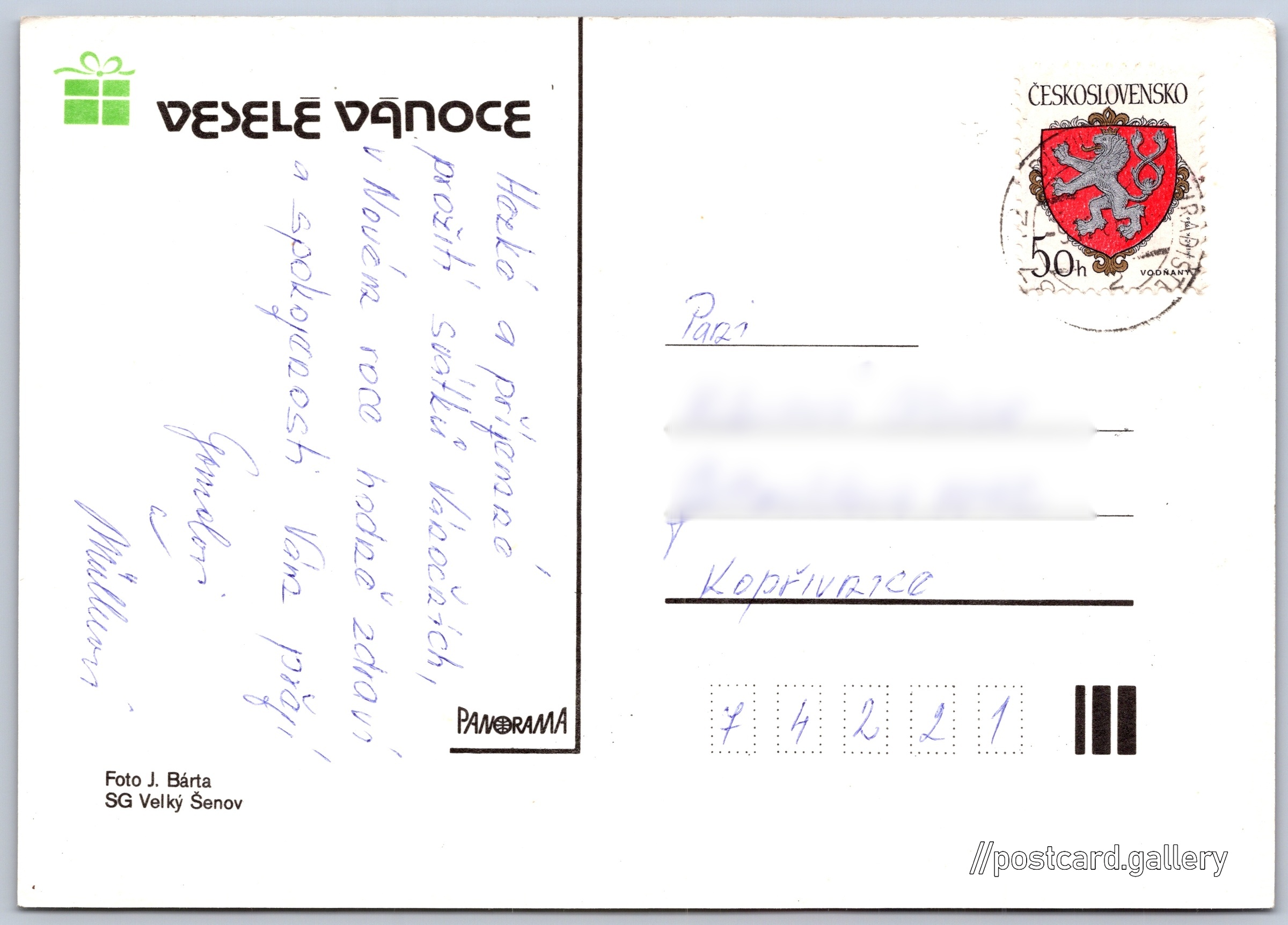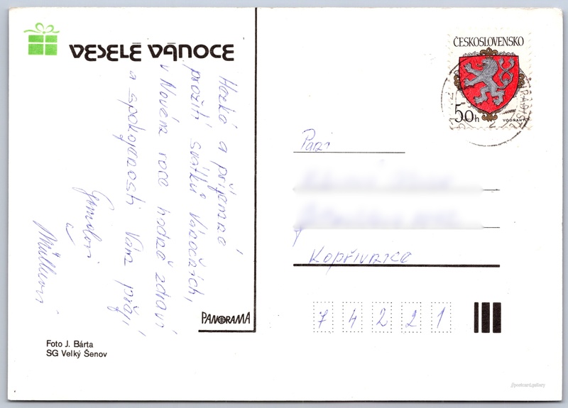 Jazyk tištěného textu na pohlednici: