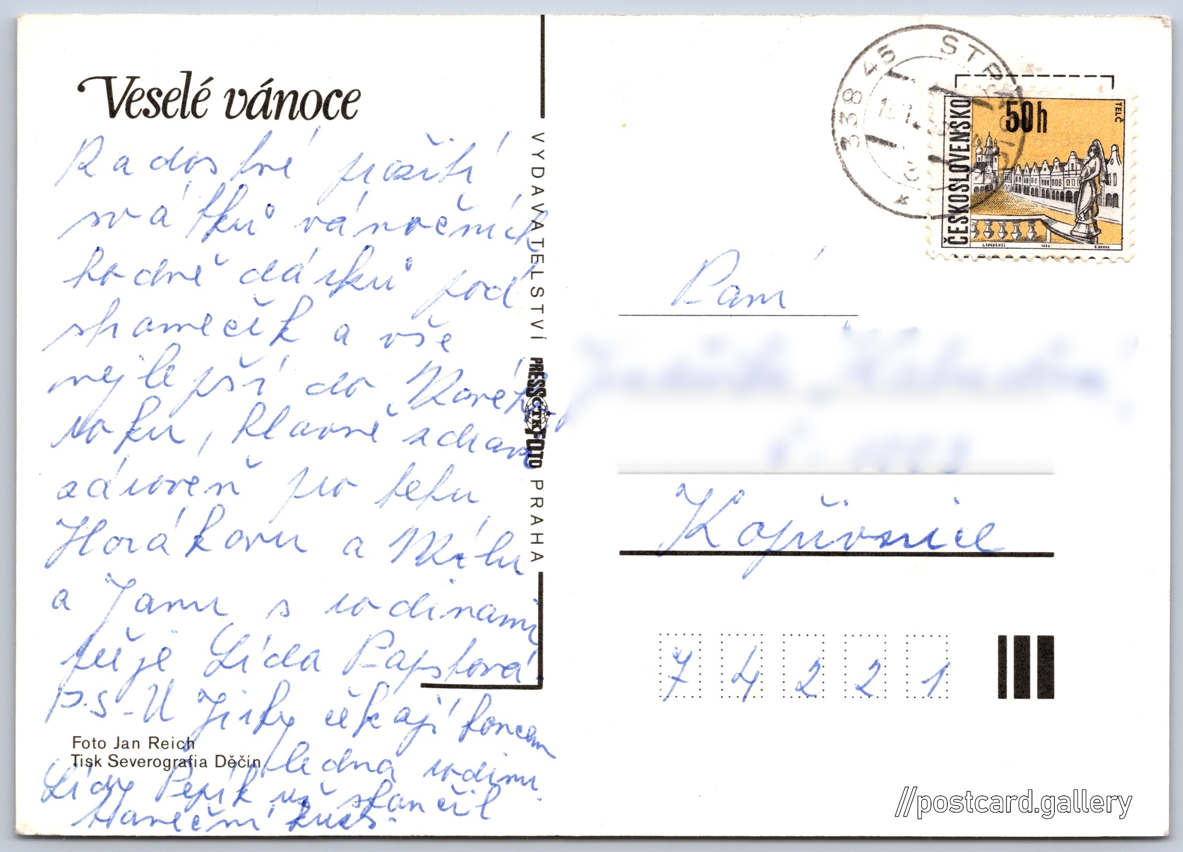 Jazyk tištěného textu na pohlednici: