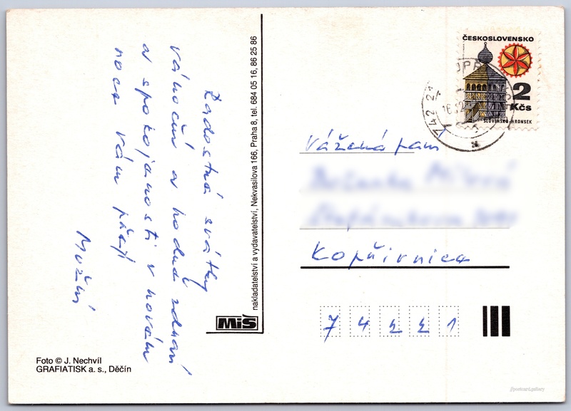 Vánoční přání Pokud chcete vidět pohlednice ve vyšším rozlišení nebo zobrazovat jejich zadní stranu, tak se prosím nejdříve přihlašte Přihlásit Zaregistrovat Jazyk tištěného textu na pohlednici: čeština Vydavatel: MiŠ nakladatelství a vydavatelství (Československo) Odhadované datum vydání pohlednice: 1989 - 1992 Pomozte nám zpřesnit rok vzniku pohlednice Velikost (š x v) a tvar pohlednice: 147 x 104 mm (5.79" x 4.09"), obdélník Osoby spjaté s touto pohlednicí: Jiří Nechvíl(Autor fotografie) Prošlá poštou:Datum na razítku: 16.12.1992 Ceny: Vyplacené známky: 2,00 Kčs (CSK) DiskuseVložit příspěvek Přidat novou složku ... Spravovat složky ...