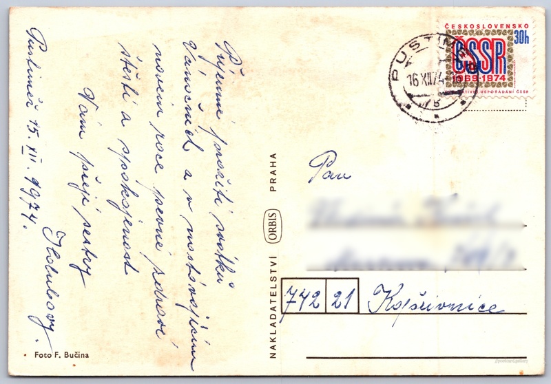 Vánoční přání Pokud chcete vidět pohlednice ve vyšším rozlišení nebo zobrazovat jejich zadní stranu, tak se prosím nejdříve přihlašte Přihlásit Zaregistrovat Jazyk tištěného textu na pohlednici: čeština Vydavatel: Nakladatelství Orbis (Československo) Odhadované datum vydání pohlednice: 1971 - 1974 Pomozte nám zpřesnit rok vzniku pohlednice Velikost (š x v) a tvar pohlednice: 146 x 100 mm (5.75" x 3.94"), obdélník Osoby spjaté s touto pohlednicí: Ferdinand Bučina(Autor fotografie) Prošlá poštou:Datum na razítku: 16.12.1974 Ceny: Vyplacené známky: 0,30 Kčs (CSK) DiskuseVložit příspěvek Přidat novou složku ... Spravovat složky ...