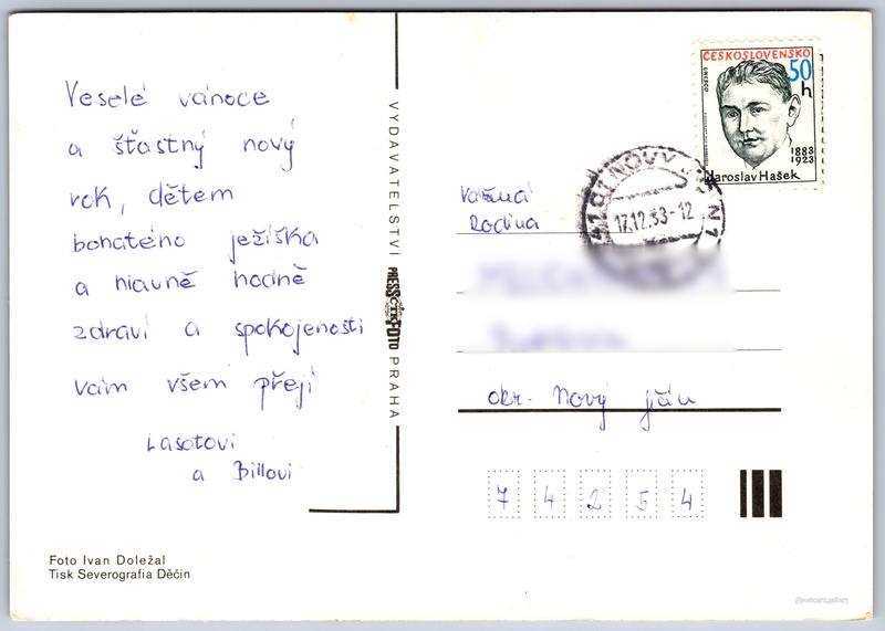 Jazyk tištěného textu na pohlednici: