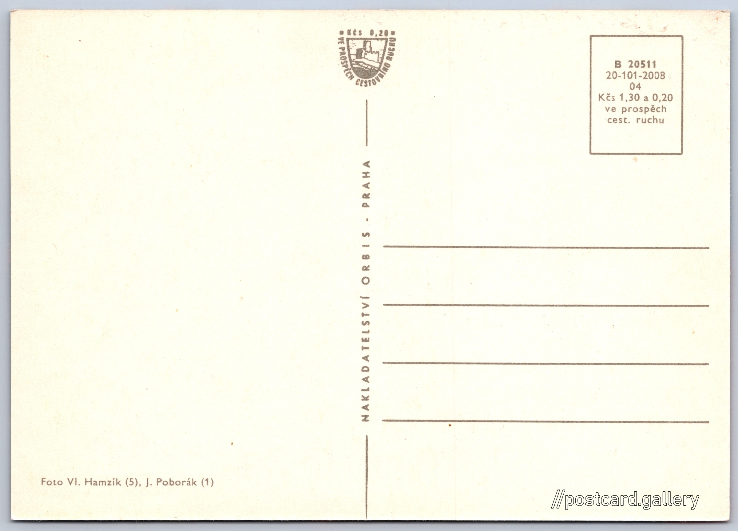 Cena pohlednice: 1,30 Kčs (CSK) (+0,20 Kčs přípl. na tur. ruch)