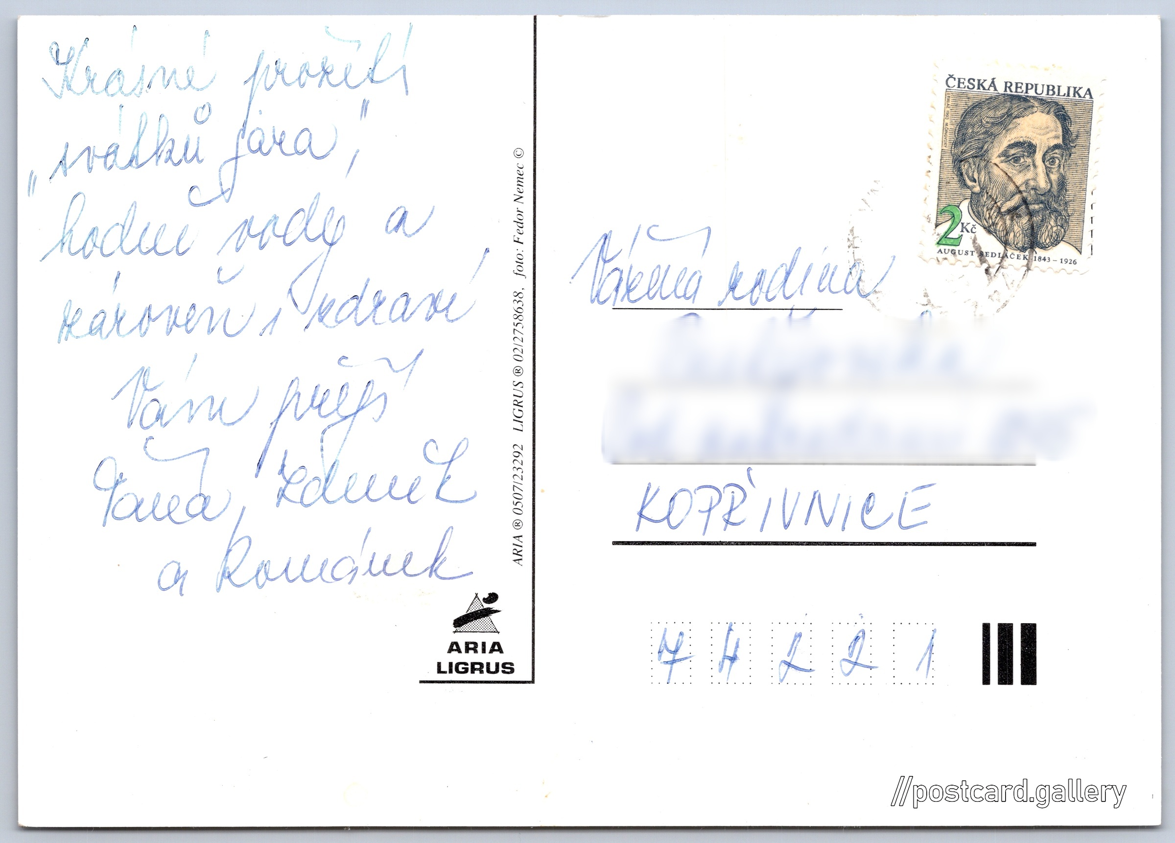 Jazyk tištěného textu na pohlednici: