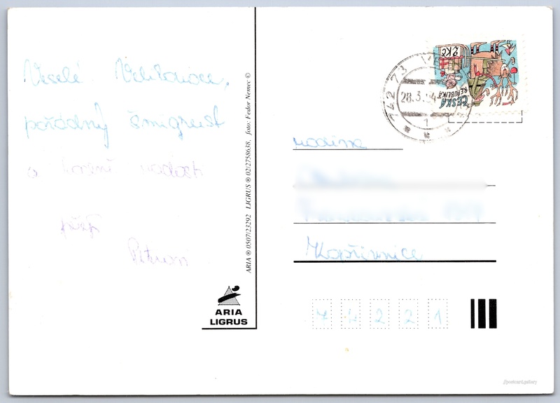 Jazyk tištěného textu na pohlednici: