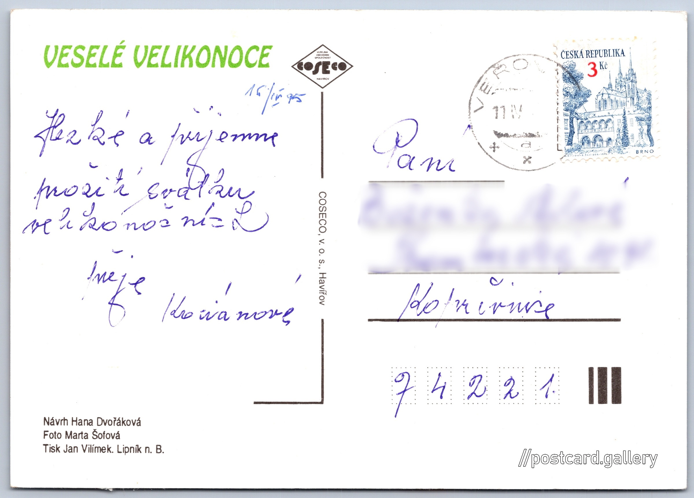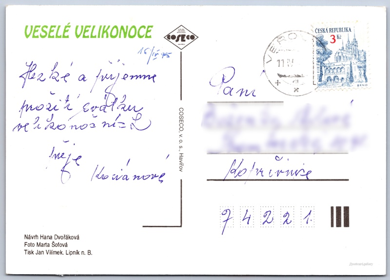 Jazyk tištěného textu na pohlednici: