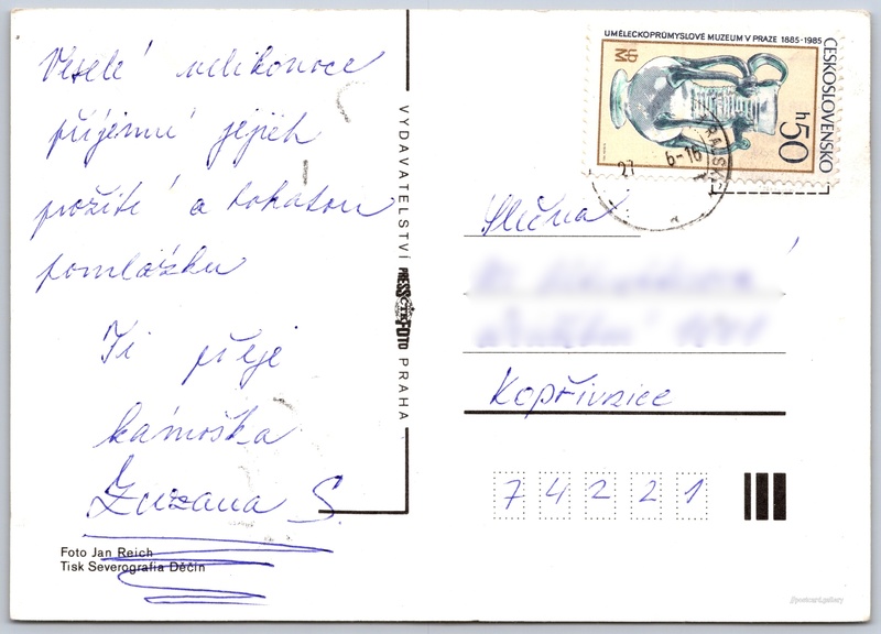 Velikonoční přání 7/13 Pokud chcete vidět pohlednice ve vyšším rozlišení nebo zobrazovat jejich zadní stranu, tak se prosím nejdříve přihlašte Přihlásit Zaregistrovat veselé velikonoce Jazyk tištěného textu na pohlednici: čeština Vydavatel: PressFoto Praha (Československo) Odhadované datum vydání pohlednice: 1983 - 1986 Pomozte nám zpřesnit rok vzniku pohlednice Velikost (š x v) a tvar pohlednice: 147 x 105 mm (5.79" x 4.13"), obdélník Osoby spjaté s touto pohlednicí: Jan Reich(Autor fotografie) Prošlá poštou:Datum na razítku: 27.3.1986 Ceny: Vyplacené známky: 0,50 Kčs (CSK) DiskuseVložit příspěvek Přidat novou složku ... Spravovat složky ...
