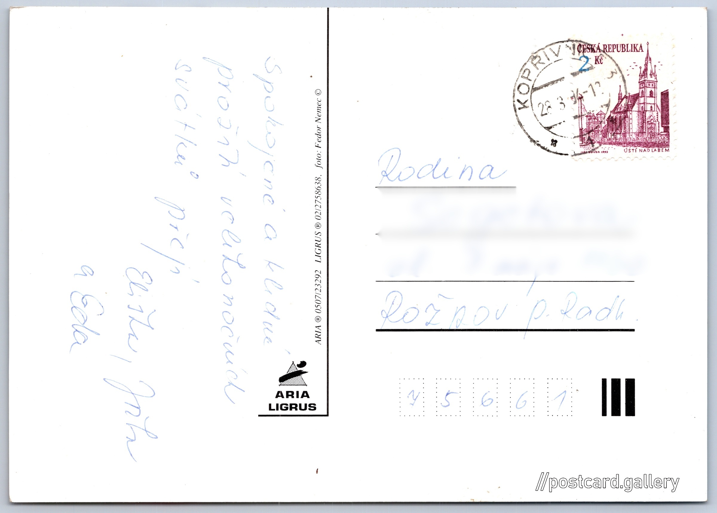 Velikonoční přání Pokud chcete vidět pohlednice ve vyšším rozlišení nebo zobrazovat jejich zadní stranu, tak se prosím nejdříve přihlašte Přihlásit Zaregistrovat Veselé Velikonoce Jazyk tištěného textu na pohlednici: čeština Vydavatel: ARIA-Cards (Česko)Ligrus (Česko) Odhadované datum vydání pohlednice: 1991 - 1994 Pomozte nám zpřesnit rok vzniku pohlednice Velikost (š x v) a tvar pohlednice: 147 x 105 mm (5.79" x 4.13"), obdélník Osoby spjaté s touto pohlednicí: Fedor Nemec(Autor fotografie) Prošlá poštou:Datum na razítku: 28.3.1994 Ceny: Vyplacené známky: 2,00 Kč (CZK) DiskuseVložit příspěvek Přidat novou složku ... Spravovat složky ...
