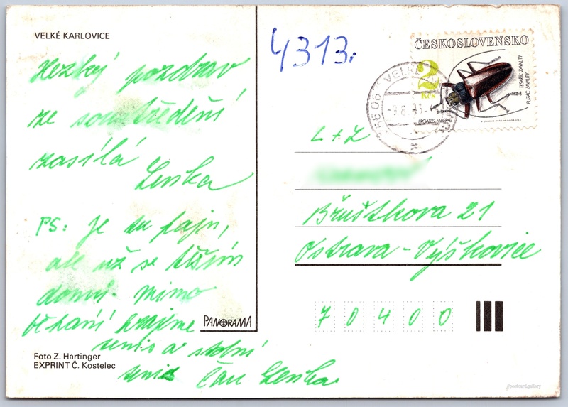 Velké Karlovice Pokud chcete vidět pohlednice ve vyšším rozlišení nebo zobrazovat jejich zadní stranu, tak se prosím nejdříve přihlašte Přihlásit Zaregistrovat Velké Karlovice VELKÉ KARLOVICE Jazyk tištěného textu na pohlednici: čeština Velké Karlovice, Obec, Česko ukázat na mapě Vydavatel: Panorama (Československo) Odhadované datum vydání pohlednice: 1990 - 1993 Pomozte nám zpřesnit rok vzniku pohlednice Velikost (š x v) a tvar pohlednice: 148 x 105 mm (5.83" x 4.13"), obdélník Osoby spjaté s touto pohlednicí: Zd. Hartinger(Autor fotografie) Prošlá poštou:Datum na razítku: 9.8.1993 Ceny: Vyplacené známky: 2,00 Kčs (CSK) DiskuseVložit příspěvek Přidat novou složku ... Spravovat složky ...