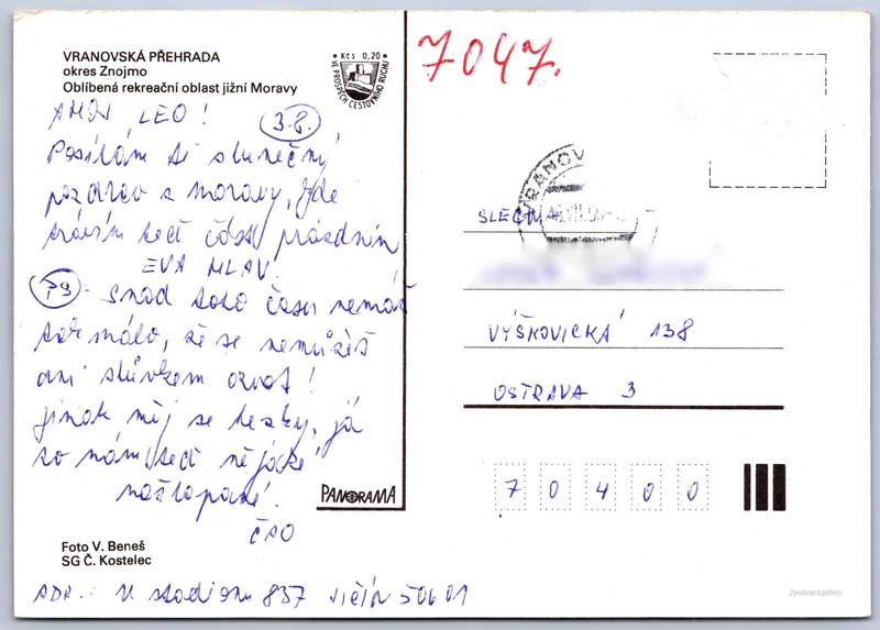 Vranovská přehrada Pokud chcete vidět pohlednice ve vyšším rozlišení nebo zobrazovat jejich zadní stranu, tak se prosím nejdříve přihlašte Přihlásit Zaregistrovat Vranovská přehrada VRANOVSKÁ PŘEHRADAokres ZnojmoOblíbená rekreační oblast jižní Moravy Jazyk tištěného textu na pohlednici: čeština Vranov nad Dyjí, Znojmo ukázat na mapě Vydavatel: Panorama (Československo) Datum vydání není známo Pomozte nám odhadnout datum vzniku pohlednice Velikost (š x v) a tvar pohlednice: 147 x 105 mm (5.79" x 4.13"), obdélník Osoby spjaté s touto pohlednicí: V. Beneš(Autor fotografie) Prošlá poštou Ceny: Příplatek na tur. ruch: 0,20 Kčs (CSK)) DiskuseVložit příspěvek Přidat novou složku ... Spravovat složky ...