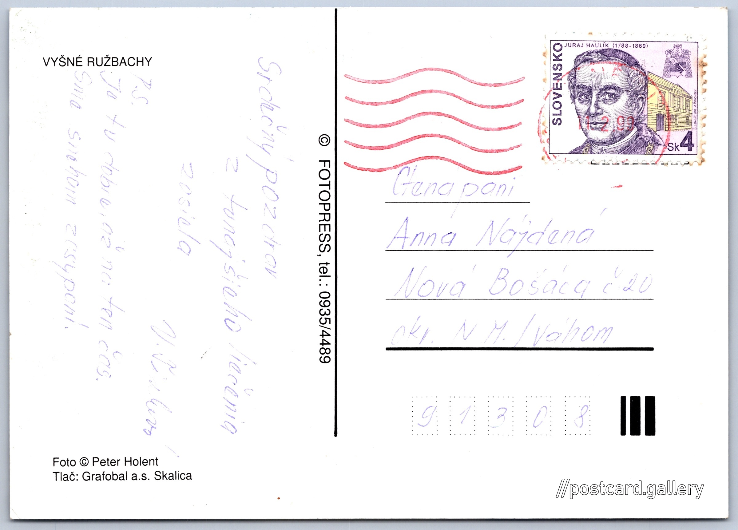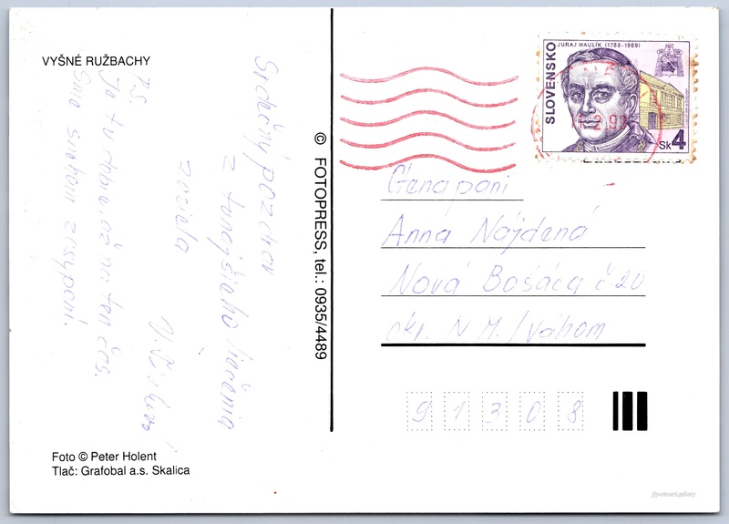 Vyšné Ružbachy Pokud chcete vidět pohlednice ve vyšším rozlišení nebo zobrazovat jejich zadní stranu, tak se prosím nejdříve přihlašte Přihlásit Zaregistrovat Vyšné Ružbachy VYŠNÉ RUŽBACHY Jazyk tištěného textu na pohlednici: slovenština Vyšné Ružbachy, Vesnice, Slovensko ukázat na mapě V blízkém okolí místa zobrazeného na pohlednici lze najít 6 jiných pohlednic. Zobrazit blízké pohlednice Vydavatel: Fotopress, Bardejov (Slovensko) Odhadované datum vydání pohlednice: 1996 - 1999 Pomozte nám zpřesnit rok vzniku pohlednice Velikost (š x v) a tvar pohlednice: 148 x 105 mm (5.83" x 4.13"), obdélník Osoby spjaté s touto pohlednicí: Peter Holent(Autor fotografie) Prošlá poštou:Datum na razítku: 11.2.1999 Ceny: Vyplacené známky: 4,00 Sk (SKK) DiskuseVložit příspěvek Přidat novou složku ... Spravovat složky ...