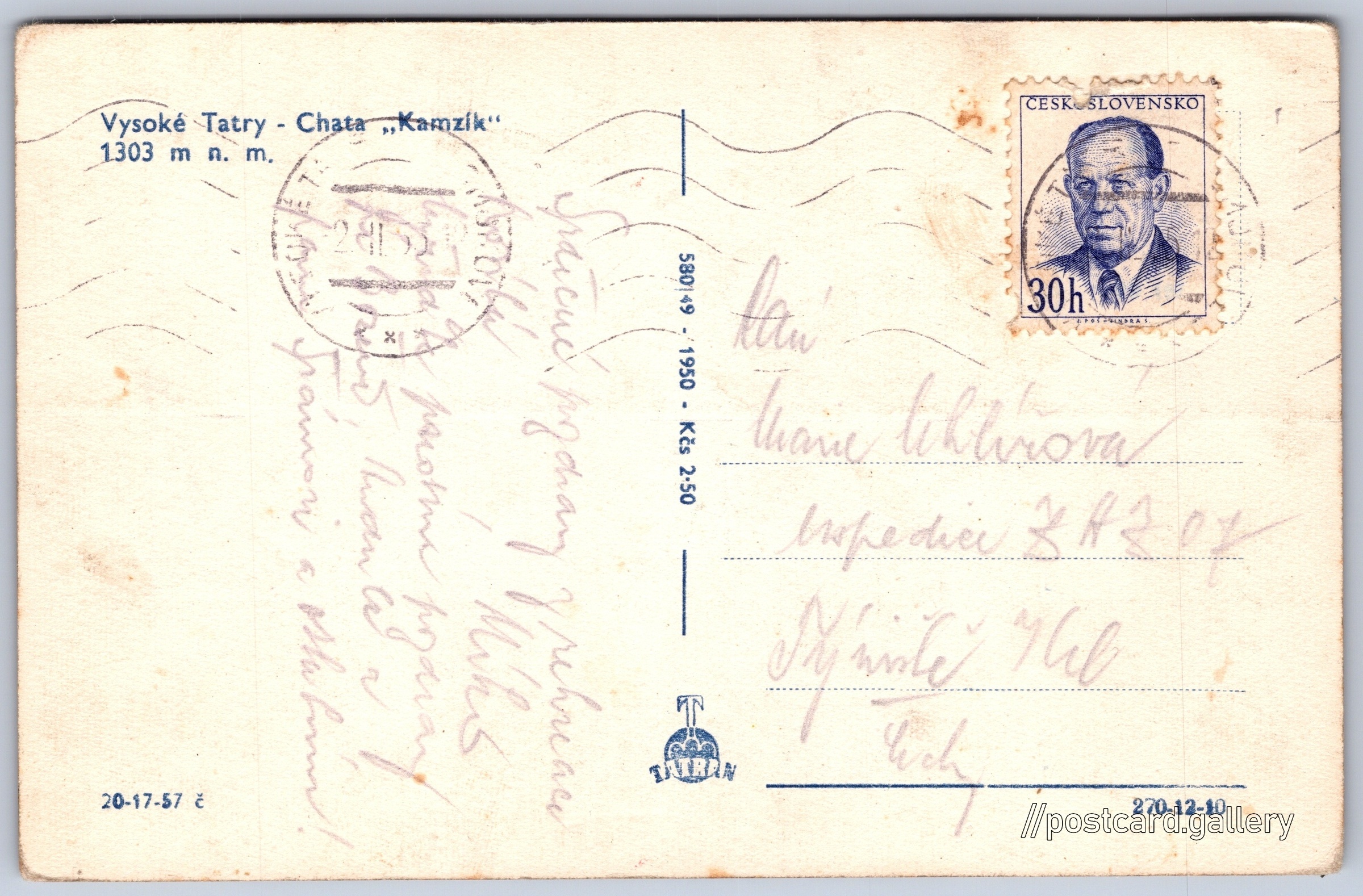 Cena pohlednice: 2,50 Kčs (CSK)