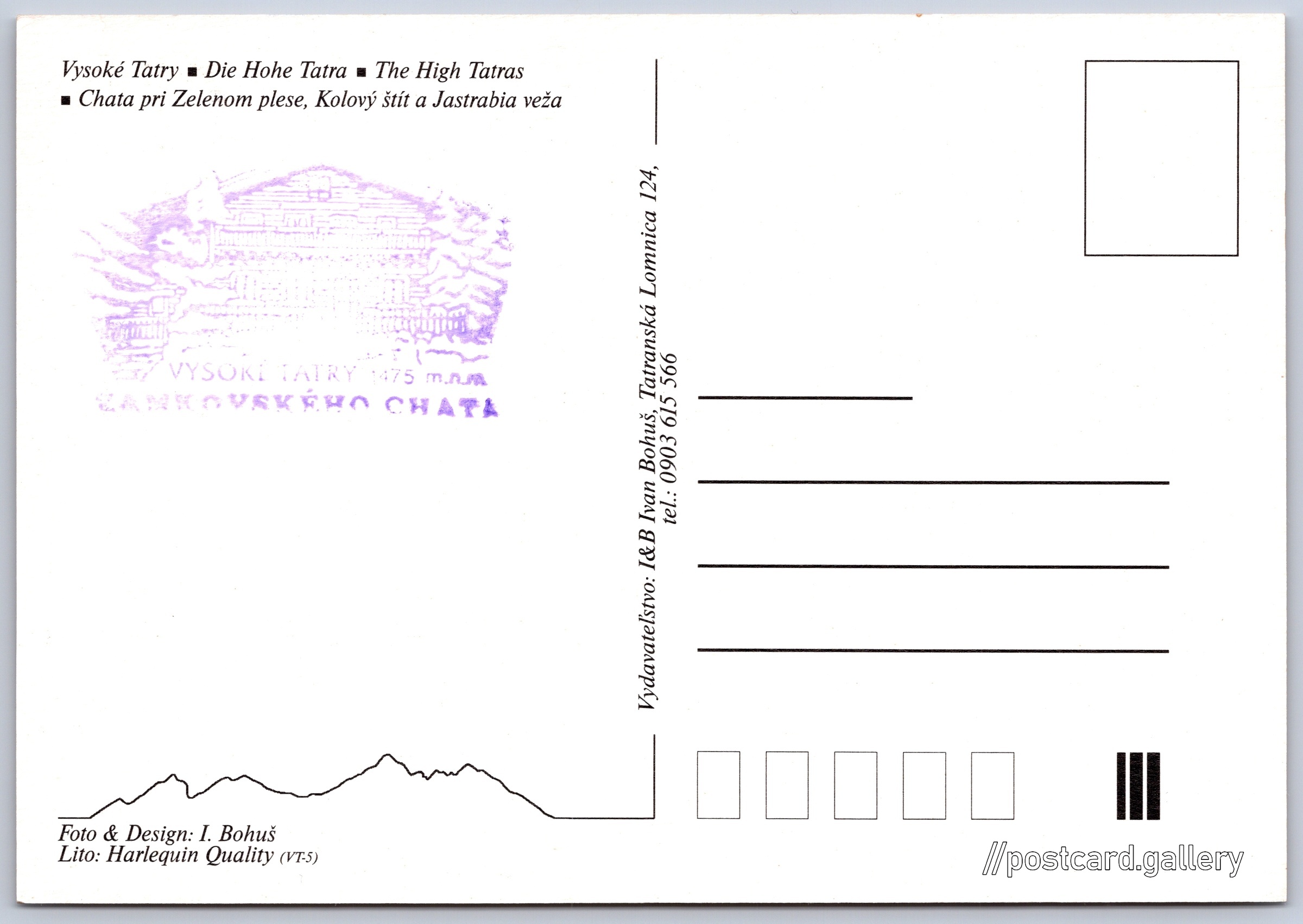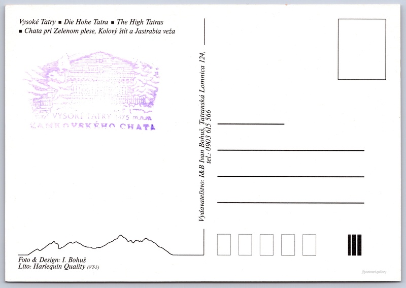 Vysoké Tatry, chata u Zeleného plesa Pokud chcete vidět pohlednice ve vyšším rozlišení nebo zobrazovat jejich zadní stranu, tak se prosím nejdříve přihlašte Přihlásit Zaregistrovat Vysoké Tatry Vysoké Tatry - Die Hohe Tatra - The High TatrasChata pri Zelenom plese, Kolový štít a Jastrabia veža Jazyk tištěného textu na pohlednici: čeština Chata pri Zelenom plese, Chata, bouda, Tatranská Lomnica 445, Vysoké Tatry - Tatranská Lomnica, Slovensko ukázat na mapě V blízkém okolí místa zobrazeného na pohlednici lze najít 125 jiných pohlednic. Zobrazit blízké pohlednice Datum vydání není známo Pomozte nám odhadnout datum vzniku pohlednice Velikost (š x v) a tvar pohlednice: 147 x 103 mm (5.79" x 4.06"), obdélník Osoby spjaté s touto pohlednicí: I. Bohuš(Autor fotografie) Čistá pohlednice (neprošlá poštou) DiskuseVložit příspěvek Přidat novou složku ... Spravovat složky ...