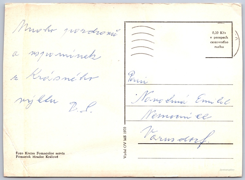 Vysoké Tatry, FIS MS 1970 Pokud chcete vidět pohlednice ve vyšším rozlišení nebo zobrazovat jejich zadní stranu, tak se prosím nejdříve přihlašte Přihlásit Zaregistrovat Vysoké TatryHigh TatrasHohe TatraLes Hautes TatrasMS 1970 FIS Vysoké Tatry Jazyk tištěného textu na pohlednici: čeština Štrba - Štrbské pleso ukázat na mapě V blízkém okolí místa zobrazeného na pohlednici lze najít 84 jiných pohlednic. Zobrazit blízké pohlednice Vydavatel: OV MS 1970 (Československo) Rok vydání pohlednice: 1970 Velikost (š x v) a tvar pohlednice: 158 x 115 mm (6.22" x 4.53"), obdélník Prošlá poštou Ceny: Příplatek na tur. ruch: 0,20 Kčs (CSK))Vyplacené známky: 0,30 Kčs (CSK) DiskuseVložit příspěvek Přidat novou složku ... Spravovat složky ...