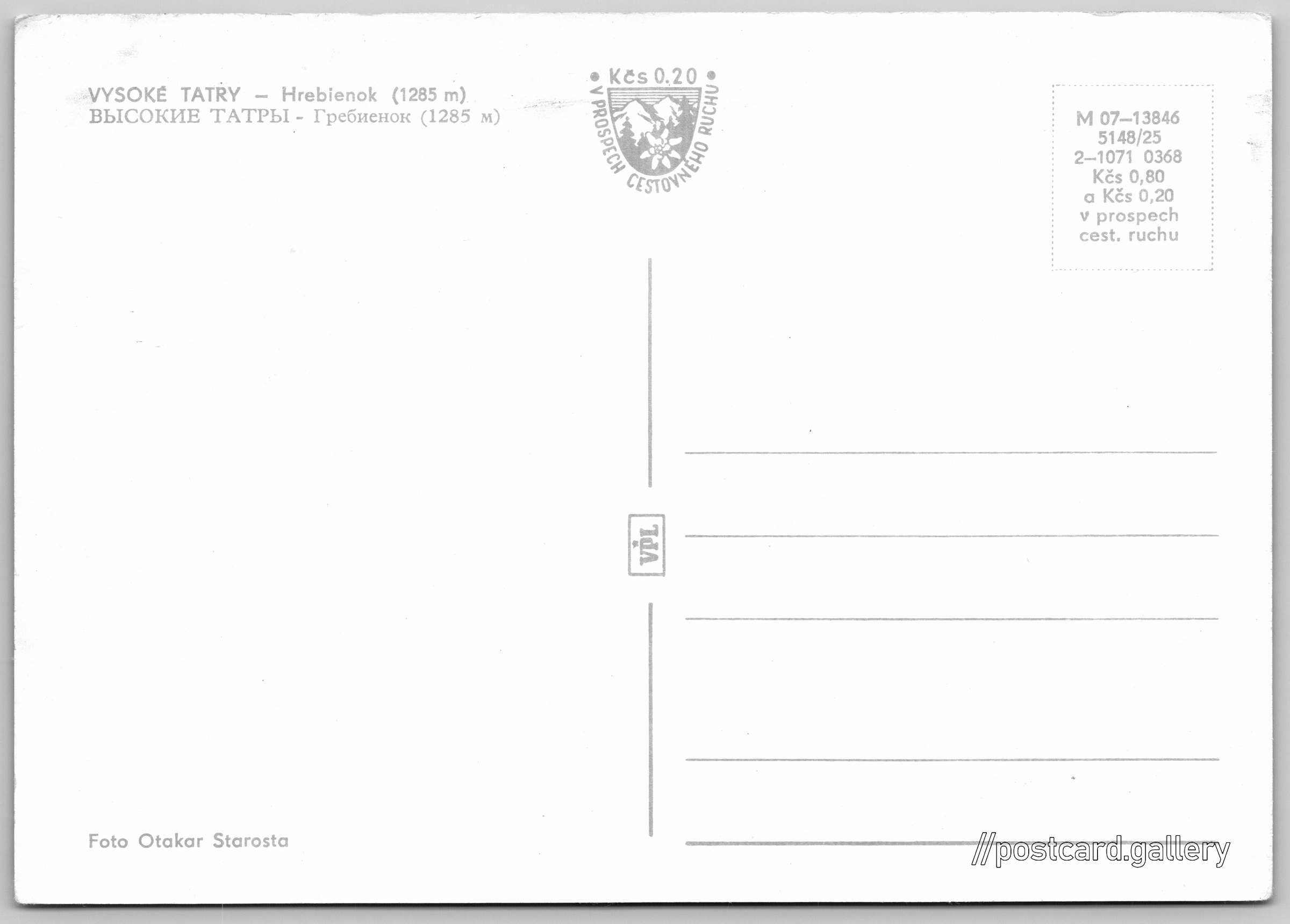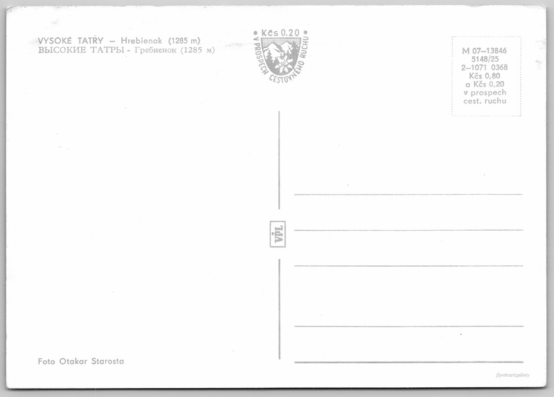 Cena pohlednice: 0,80 Kčs (CSK) (+0,20 Kčs přípl. na tur. ruch)