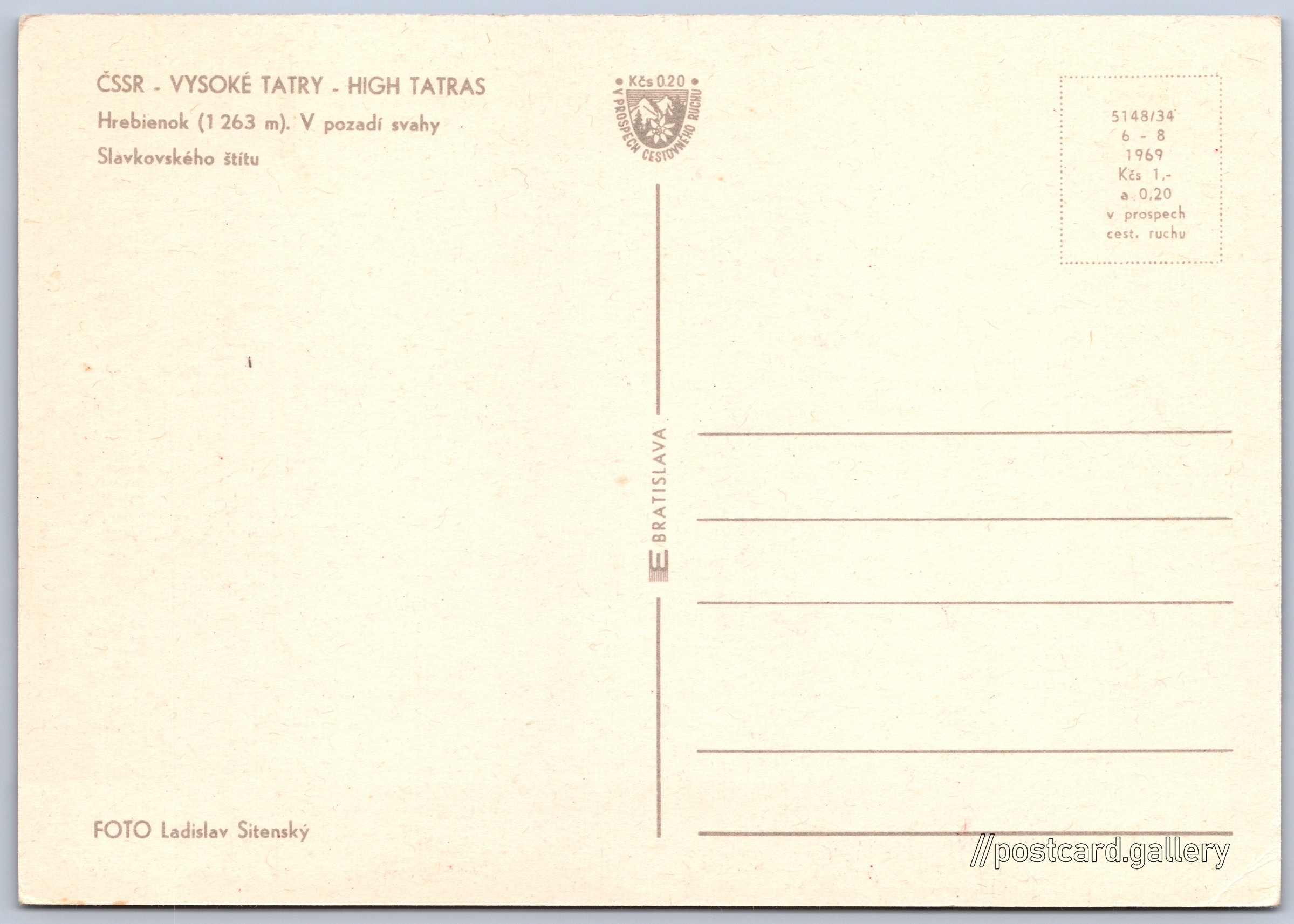 Cena pohlednice: 1,00 Kčs (CSK) (+0,20 Kčs přípl. na tur. ruch)