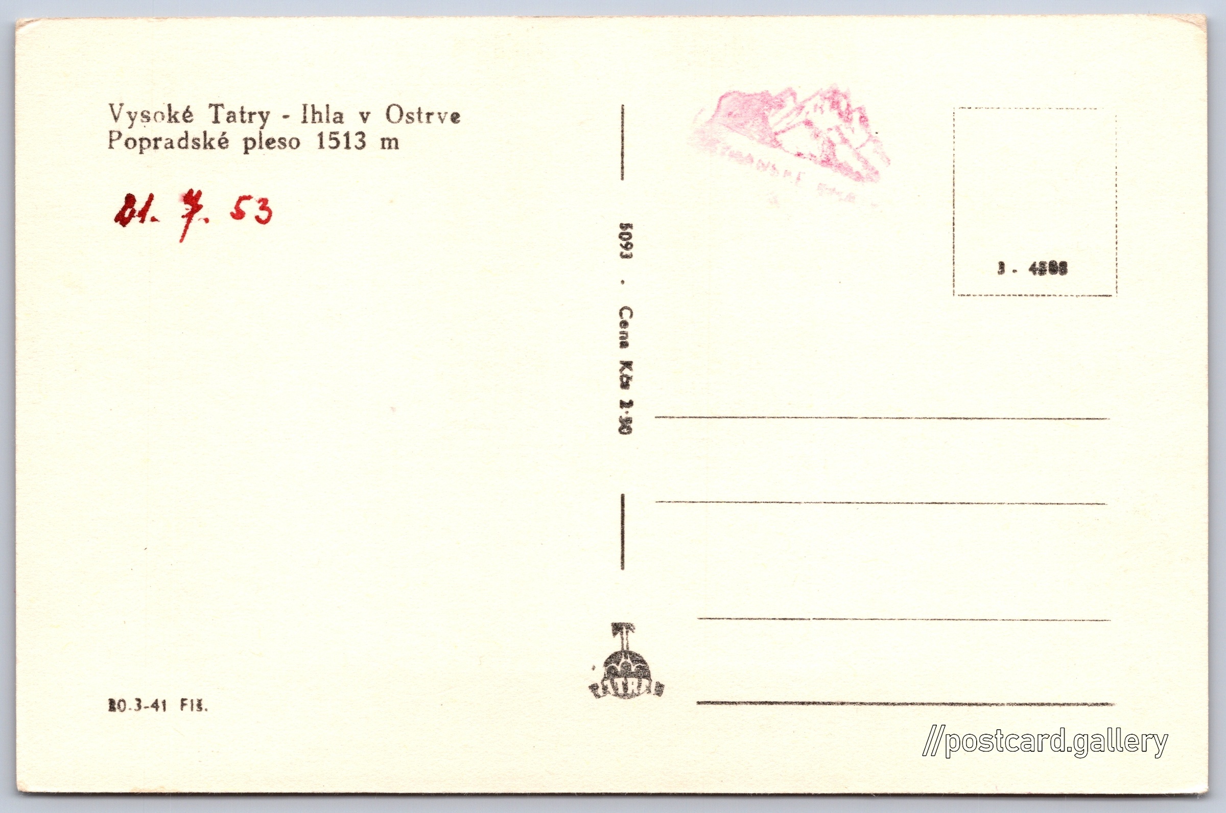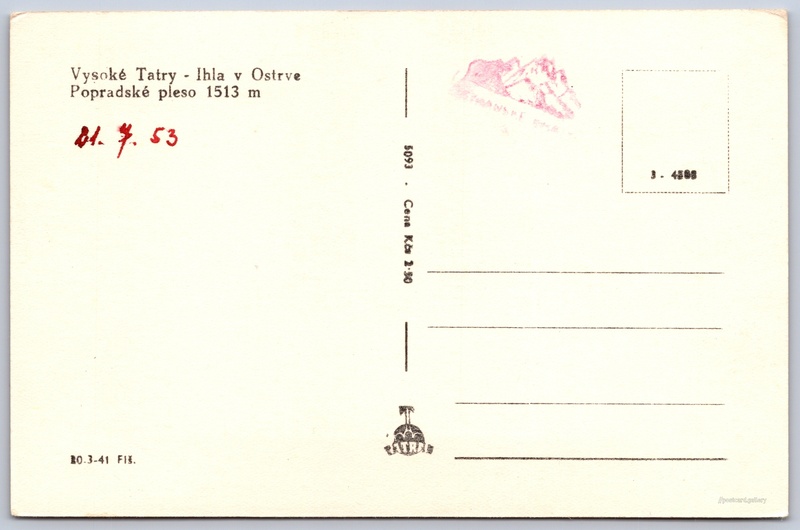 Vysoké Tatry, Ihla v Ostrve 6/112 Pokud chcete vidět pohlednice ve vyšším rozlišení nebo zobrazovat jejich zadní stranu, tak se prosím nejdříve přihlašte Přihlásit Zaregistrovat Vysoké Tatry - Ihla v OstrvePopradské pleso 1513 m Jazyk tištěného textu na pohlednici: slovenština Ihla v Ostrve (1890 m), Hora, výškový bod, Vysoké Tatry - Štrbské Pleso, Slovensko ukázat na mapě V blízkém okolí místa zobrazeného na pohlednici lze najít 112 jiných pohlednic. Zobrazit blízké pohlednice Vydavatel: Tatran (Československo) Datum vydání není známo Pomozte nám odhadnout datum vzniku pohlednice Velikost (š x v) a tvar pohlednice: 138 x 90 mm (5.43" x 3.54"), obdélník Čistá pohlednice (neprošlá poštou) Ceny: Cena pohlednice: 2,50 Kčs (CSK) Kódy na pohlednici: 20.3-41 Fiš. 5093 3-4583 DiskuseVložit příspěvek Přidat novou složku ... Spravovat složky ...