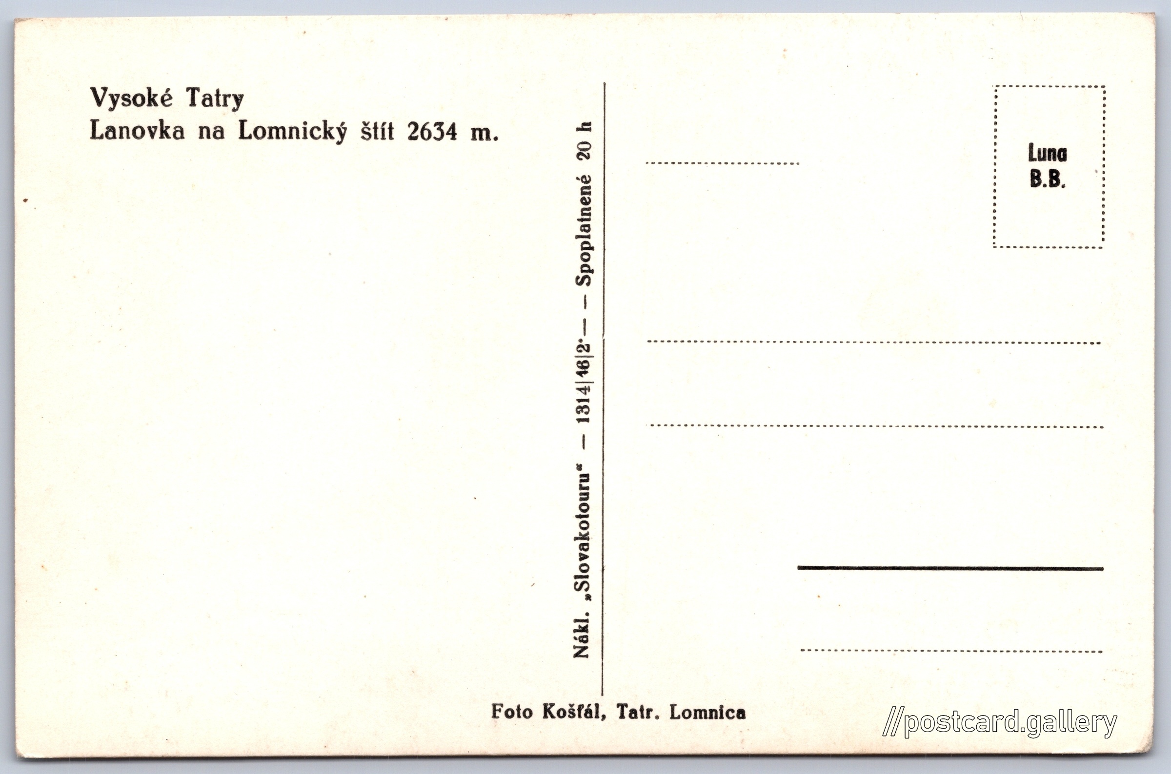 Cena pohlednice: 2,00 Kčs (CSK) (+0,20 Kčs přípl. na tur. ruch)