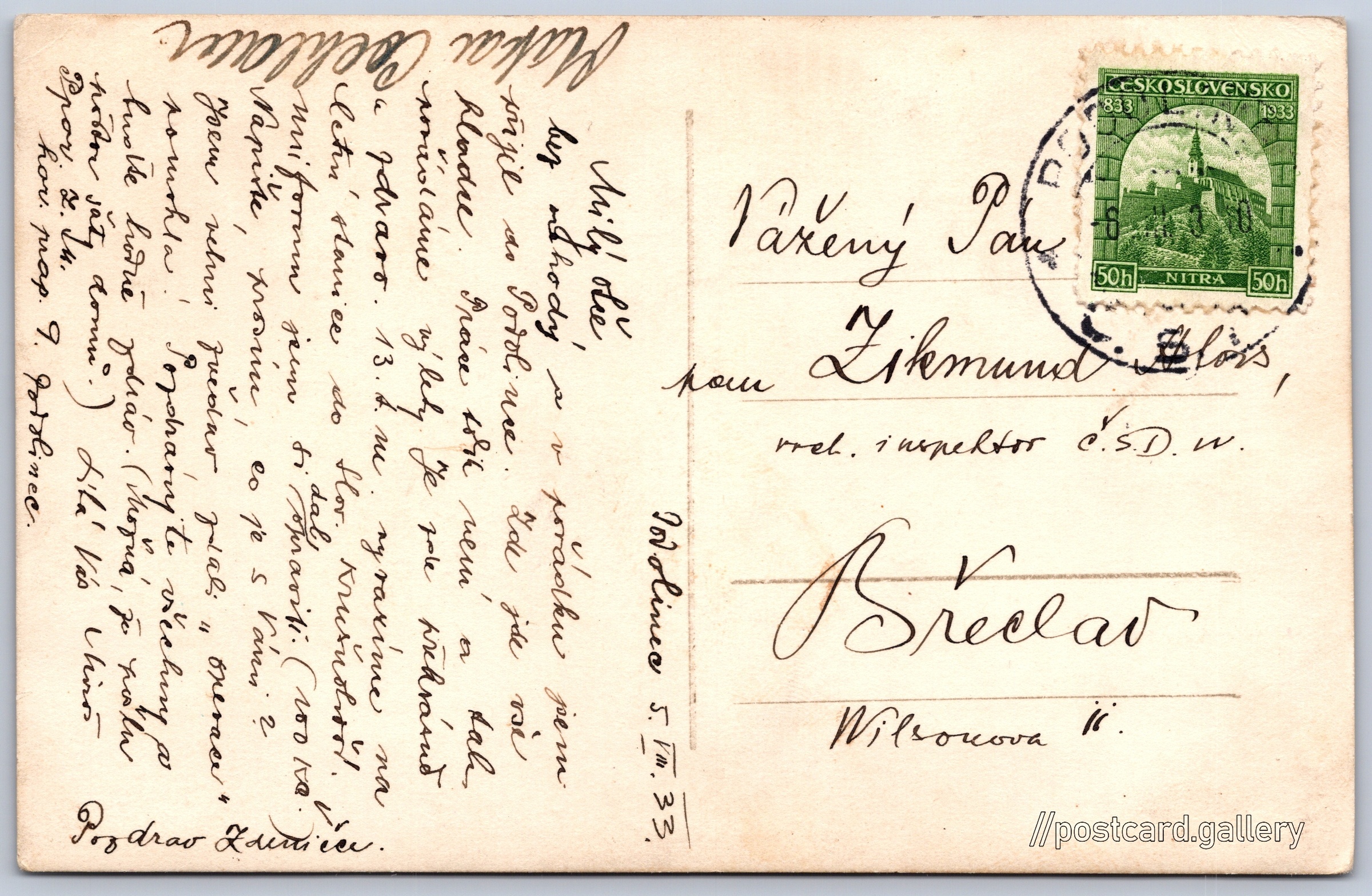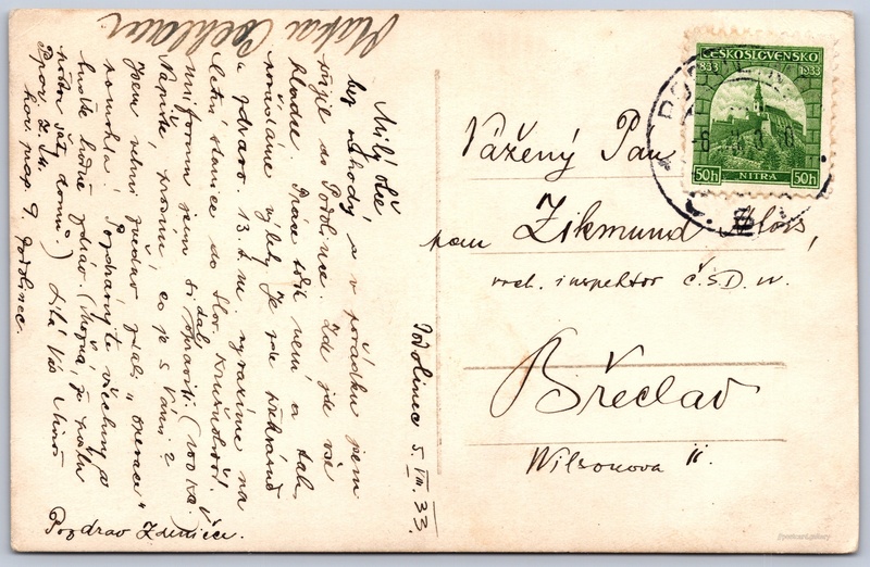 Vysoké Tatry, Téryho chata 3/146 Pokud chcete vidět pohlednice ve vyšším rozlišení nebo zobrazovat jejich zadní stranu, tak se prosím nejdříve přihlašte Přihlásit Zaregistrovat VYSOKÉ TATRYPät Spišských pliesTéryho chata 2011 mStredohrot 2440 m Jazyk tištěného textu na pohlednici: slovenština Téryho chata, Chata, bouda, Na Pyšný štít 447, Vysoké Tatry - Tatranská Lomnica, Slovensko ukázat na mapě V blízkém okolí místa zobrazeného na pohlednici lze najít 146 jiných pohlednic. Zobrazit blízké pohlednice Odhadované datum vydání pohlednice: 1930 - 1933 Pomozte nám zpřesnit rok vzniku pohlednice Velikost (š x v) a tvar pohlednice: 139 x 89 mm (5.47" x 3.50"), obdélník Prošlá poštou:Datum na razítku: 6.8.1933Datum napsání pohledu: 5.8.1933 Ceny: Vyplacené známky: 0,50 Kčs (CSK) Kódy na pohlednici: 2882 (?) DiskuseVložit příspěvek Přidat novou složku ... Spravovat složky ...