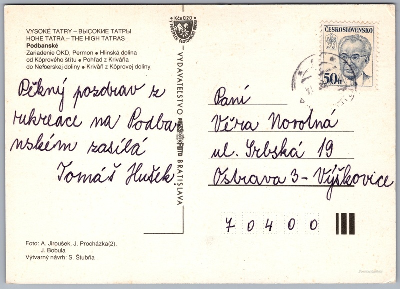 Jazyk tištěného textu na pohlednici: