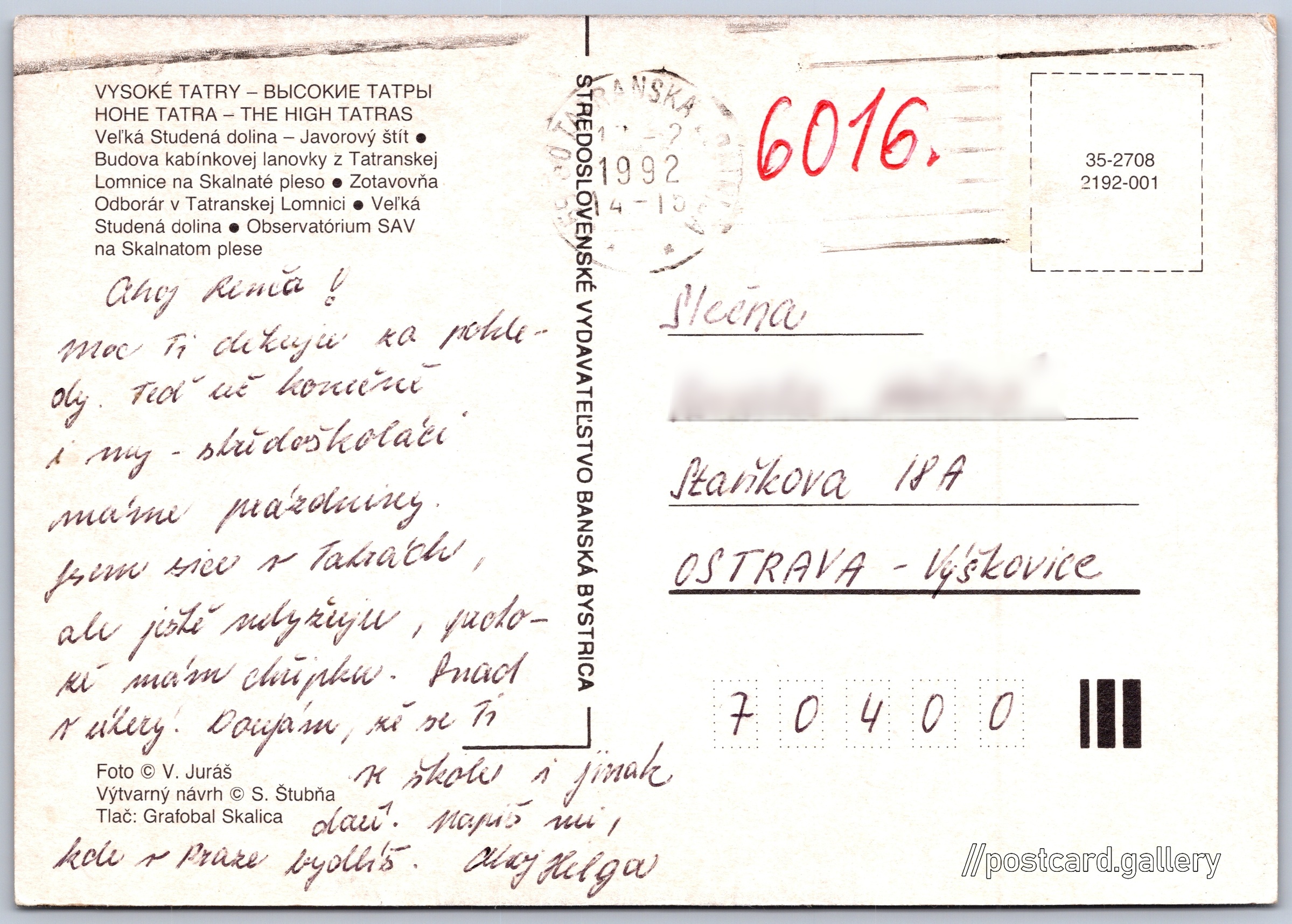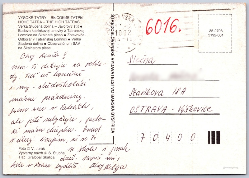 Jazyky tištěného textu na pohlednici: