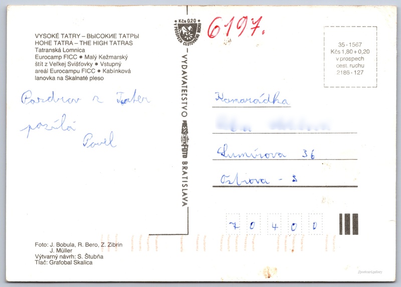 Jazyky tištěného textu na pohlednici: