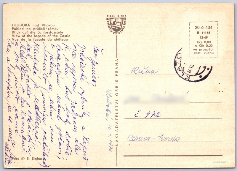 Zámek Hluboká nad Vltavou Pokud chcete vidět pohlednice ve vyšším rozlišení nebo zobrazovat jejich zadní stranu, tak se prosím nejdříve přihlašte Přihlásit Zaregistrovat HLUBOKÁ nad Vltavou- Pohled na průčelí zámku- Blick auf die Schlossfassade- View of the façade of the Castle- Vue de la façade du château Jazyky tištěného textu na pohlednici: čeština, němčina, angličtina, francouzština Hluboká nad Vltavou, České Budějovice ukázat na mapě V blízkém okolí místa zobrazeného na pohlednici lze najít 12 jiných pohlednic. Zobrazit blízké pohlednice Vydavatel: Nakladatelství Orbis (Československo) Rok vydání pohlednice: prosinec, 1969 Velikost (š x v) a tvar pohlednice: 148 x 105 mm (5.83" x 4.13"), obdélník Osoby spjaté s touto pohlednicí: Erich Einhorn(Autor fotografie) Prošlá poštou:Datum na razítku: 14.7.1970Datum napsání pohledu: 10.7.1970 Ceny: Cena pohlednice: 0,80 Kčs (CSK) (+0,20 Kčs přípl. na tur. ruch) Kódy na pohlednici: 20-6-434 B 11166 12-69 DiskuseVložit příspěvek Přidat novou složku ... Spravovat složky ...