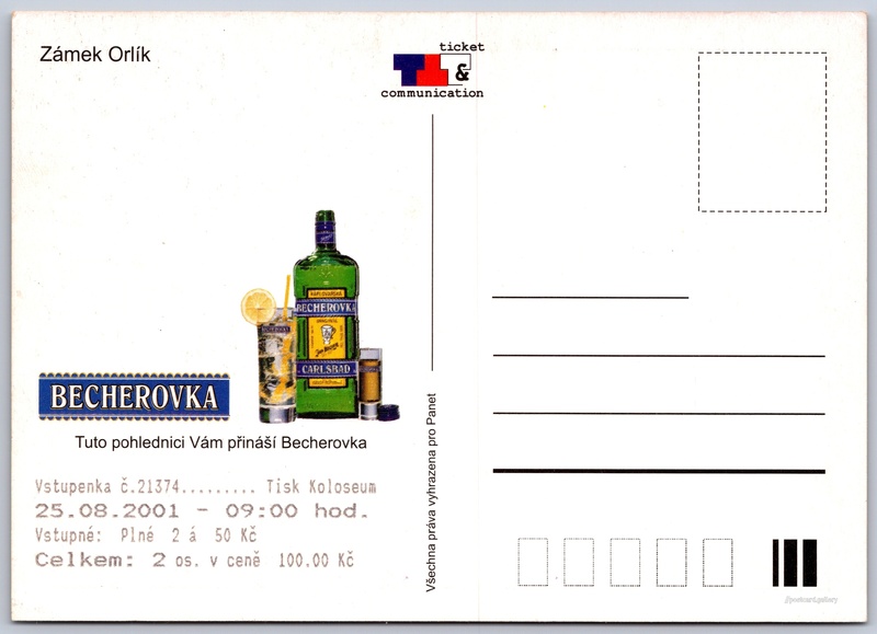 Zámek Orlík, reprodukce obrazu 8/15 Pokud chcete vidět pohlednice ve vyšším rozlišení nebo zobrazovat jejich zadní stranu, tak se prosím nejdříve přihlašte Přihlásit Zaregistrovat Zámek OrlíkBECHEROVKATuto pohlednici Vám přináší BecherovkaVstupenka č.21374......... Tisk Koloseum25.08.2001 - 09:00 hod.Vstupné: Plné 2 á 50 KčCelkem: 2 os. v ceně 100.00 Kč Jazyk tištěného textu na pohlednici: čeština Zámek Orlík nad Vltavou, Zámek, Orlík nad Vltavou 112, Orlík nad Vltavou, Česko ukázat na mapě V blízkém okolí místa zobrazeného na pohlednici lze najít 15 jiných pohlednic. Zobrazit blízké pohlednice Odhadované datum vydání pohlednice: 2000 - 2001 Pomozte nám zpřesnit rok vzniku pohlednice Velikost (š x v) a tvar pohlednice: 147 x 106 mm (5.79" x 4.17"), obdélník Osoby spjaté s touto pohlednicí: Karel Postl(Autor předlohy) Čistá pohlednice (neprošlá poštou) DiskuseVložit příspěvek Přidat novou složku ... Spravovat složky ...