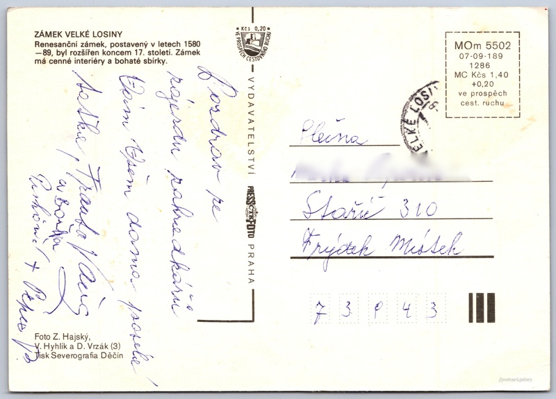 Cena pohlednice: 1,40 Kčs (CSK) (+0,20 Kčs přípl. na tur. ruch)