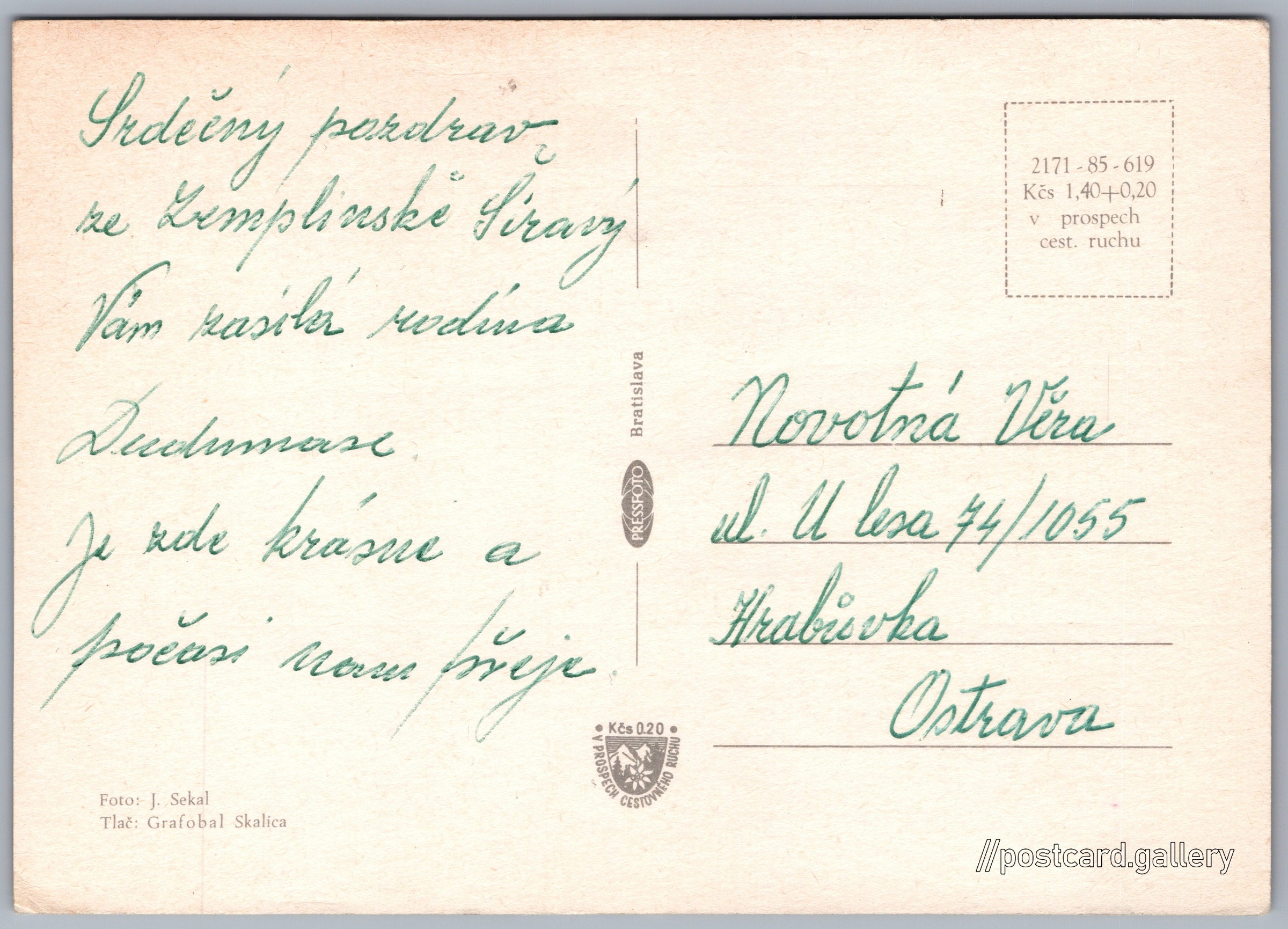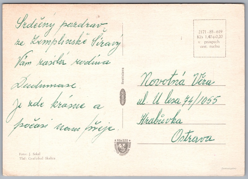 Zemplínska Šírava Pokud chcete vidět pohlednice ve vyšším rozlišení nebo zobrazovat jejich zadní stranu, tak se prosím nejdříve přihlašte Přihlásit Zaregistrovat Zemplínska Šírava Jazyk tištěného textu na pohlednici: čeština Vinné ukázat na mapě V blízkém okolí místa zobrazeného na pohlednici lze najít 11 jiných pohlednic. Zobrazit blízké pohlednice Vydavatel: PressFoto Bratislava (Československo) Datum vydání není známo Pomozte nám odhadnout datum vzniku pohlednice Velikost (š x v) a tvar pohlednice: 148 x 105 mm (5.83" x 4.13"), obdélník Osoby spjaté s touto pohlednicí: Josef Sekal(Autor fotografie) Prošlá poštou Ceny: Cena pohlednice: 1,40 Kčs (CSK) (+0,20 Kčs přípl. na tur. ruch) Kódy na pohlednici: 2171-85-619 DiskuseVložit příspěvek Přidat novou složku ... Spravovat složky ...