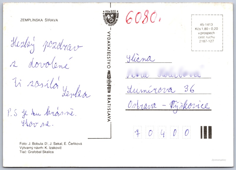 Cena pohlednice: 1,80 Kčs (CSK) (+0,20 Kčs přípl. na tur. ruch)