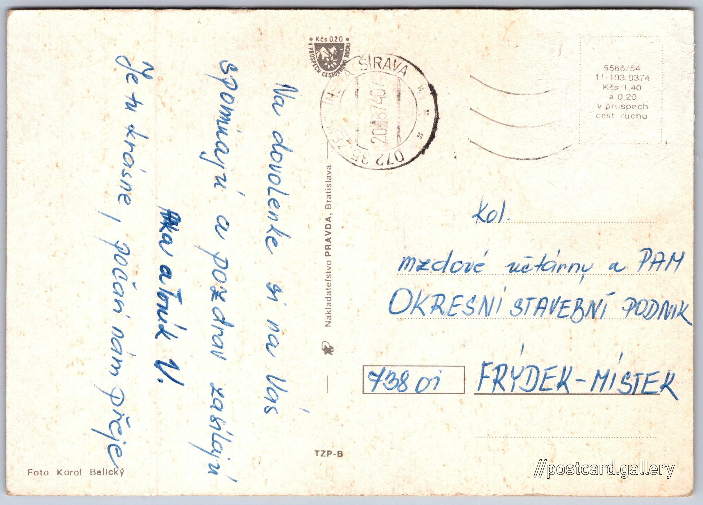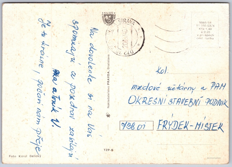 Cena pohlednice: 1,40 Kčs (CSK) (+0,20 Kčs přípl. na tur. ruch)