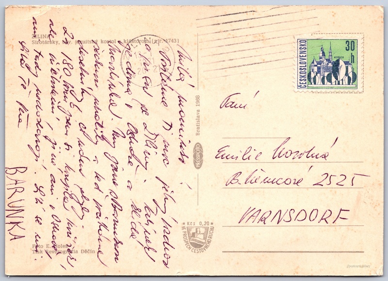 Žilina, Sirotársky kostel 3/7 Pokud chcete vidět pohlednice ve vyšším rozlišení nebo zobrazovat jejich zadní stranu, tak se prosím nejdříve přihlašte Přihlásit Zaregistrovat ŽILINASirotársky, býv. jezuitský kostel s kláštorom (z r. 1743) Jazyk tištěného textu na pohlednici: angličtina Mariánske námestie ukázat na mapě V blízkém okolí místa zobrazeného na pohlednici lze najít 7 jiných pohlednic. Zobrazit blízké pohlednice Vydavatel: PressFoto Bratislava (Československo) Rok vydání pohlednice: 1968 Velikost (š x v) a tvar pohlednice: 146 x 104 mm (5.75" x 4.09"), obdélník Osoby spjaté s touto pohlednicí: Emil Holeš(Autor fotografie) Prošlá poštou:Datum na razítku: 13.7.1971 Ceny: Příplatek na tur. ruch: 0,20 Kčs (CSK))Vyplacené známky: 0,30 Kčs (CSK) DiskuseVložit příspěvek Přidat novou složku ... Spravovat složky ...