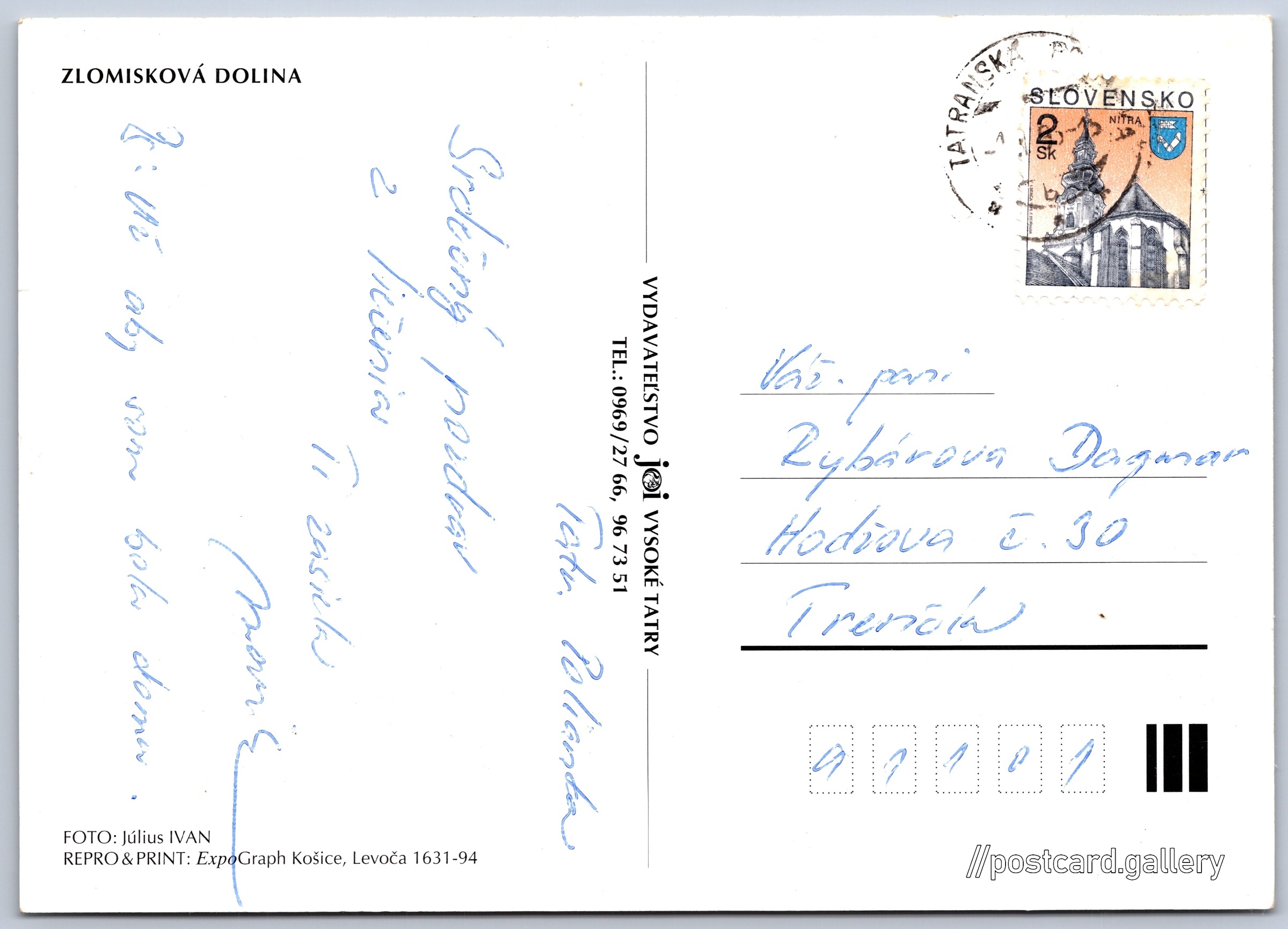 Jazyk tištěného textu na pohlednici: